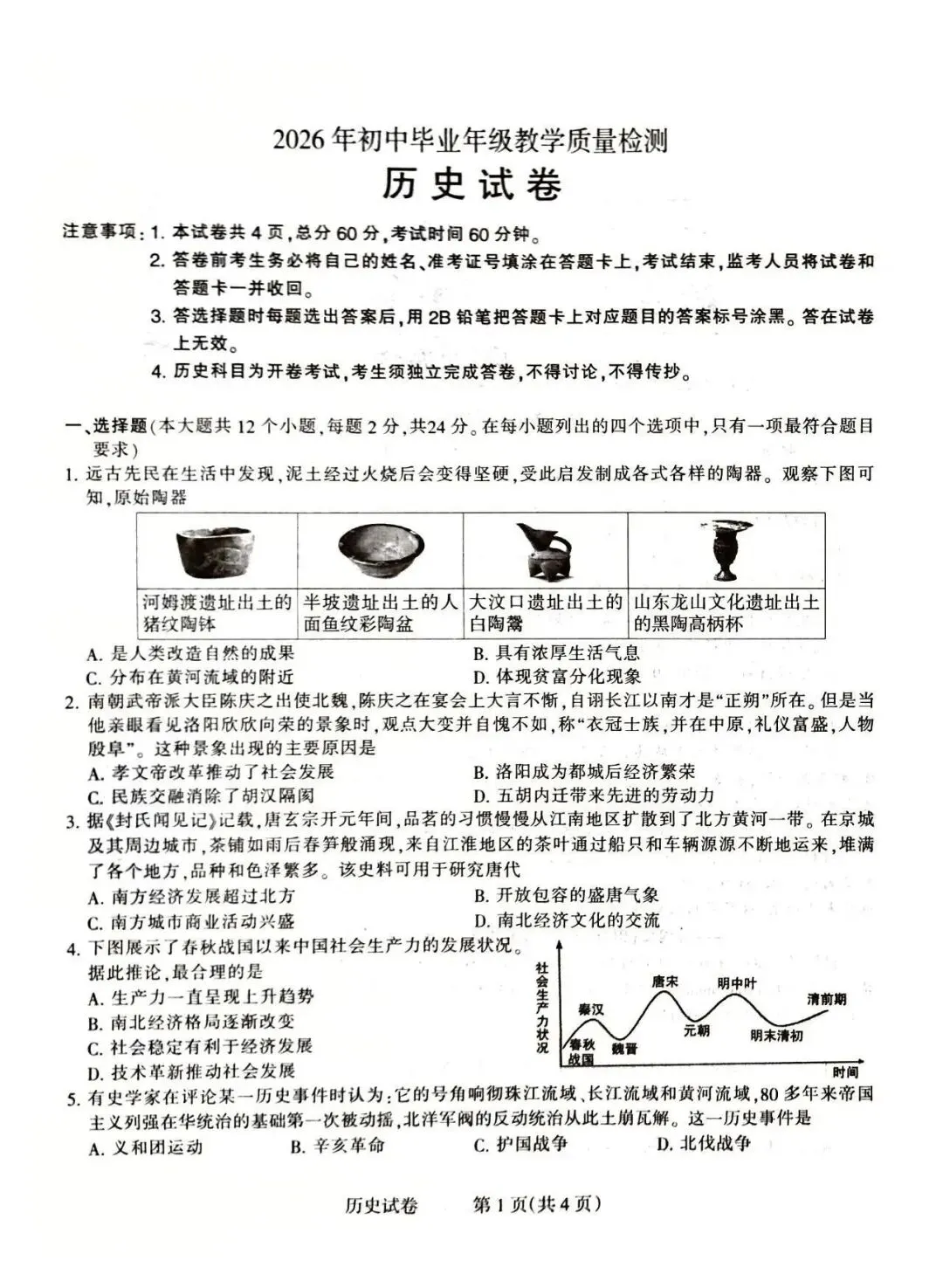 2026年河北初中学业水平模拟数学试卷(摸底一)