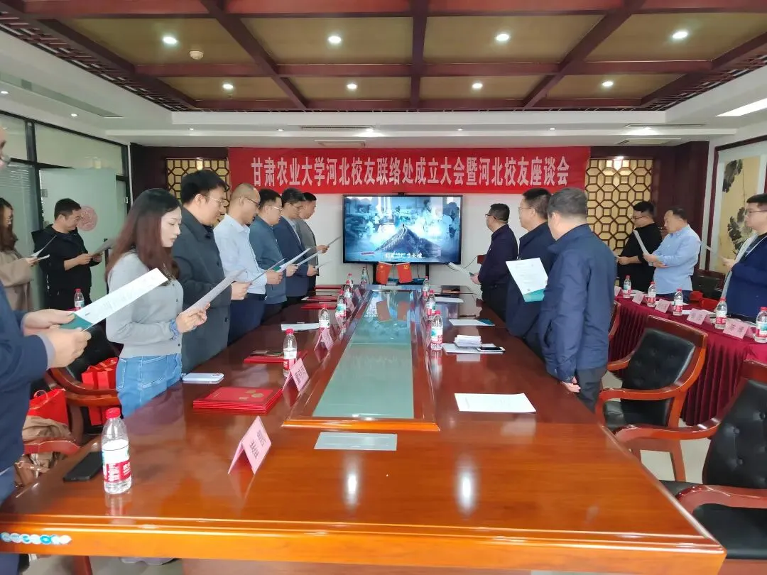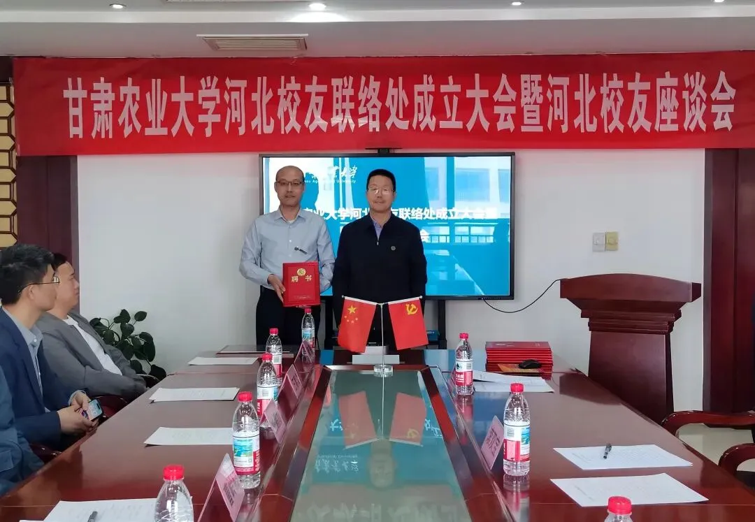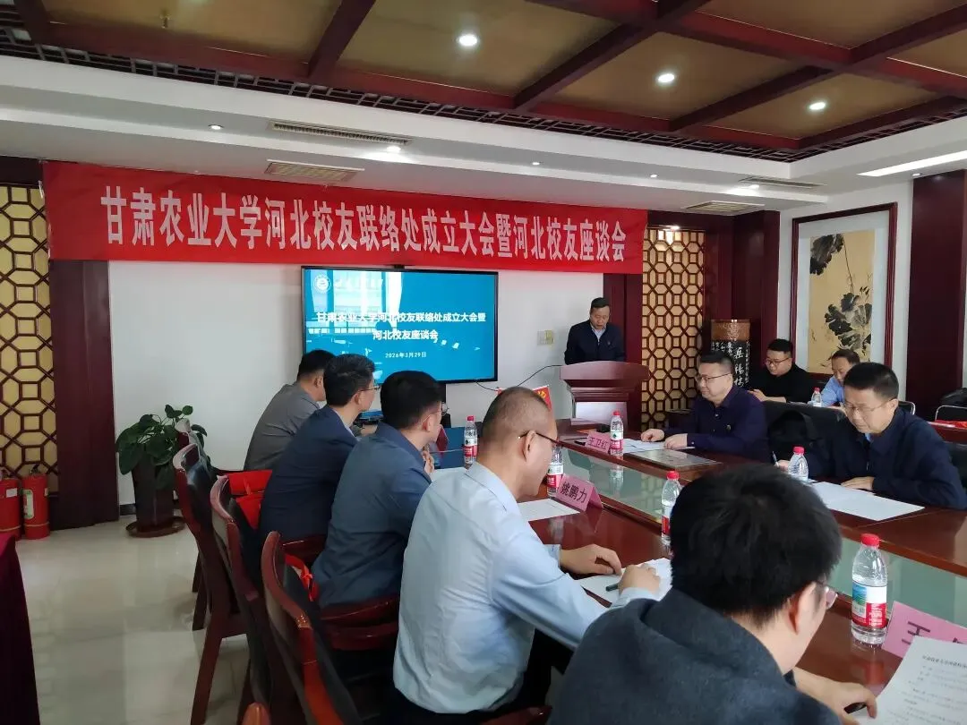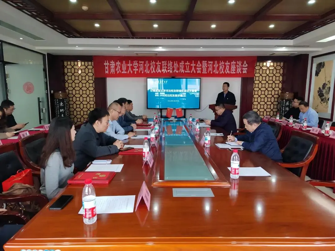 2026年3月29日,甘肃农业大学河北校友联络处成立大会在石家庄市举行。甘肃农业大学党委常委、副校长滚双宝,学校校友会会长潘峰,食品科学与工程学院党委书记王卫红及在河北省各行各业工作的校友代表20余人参加会议。