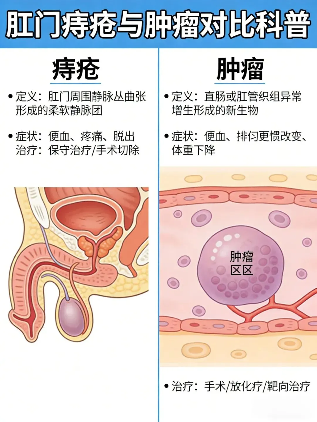 ⚠️ 很多人都有过这样的尴尬:洗澡时摸到肛门有个小疙瘩,瞬间慌了神——是常见的痔疮,还是让人害怕的肛门肿瘤?其实肛门长疙瘩,80%以上都是痔疮,但也有少数是肛门肿瘤的信号,一旦混淆,很可能延误最佳治疗时机。今天就用最直白的话,教你快速区分,看完不用再瞎担心!一、常见情况:痔疮(80%以上的可能)