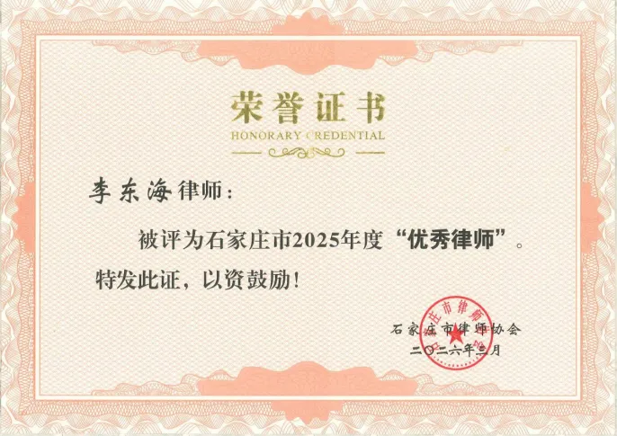 李东海主任被评选为石家庄市2025年度“优秀律师”