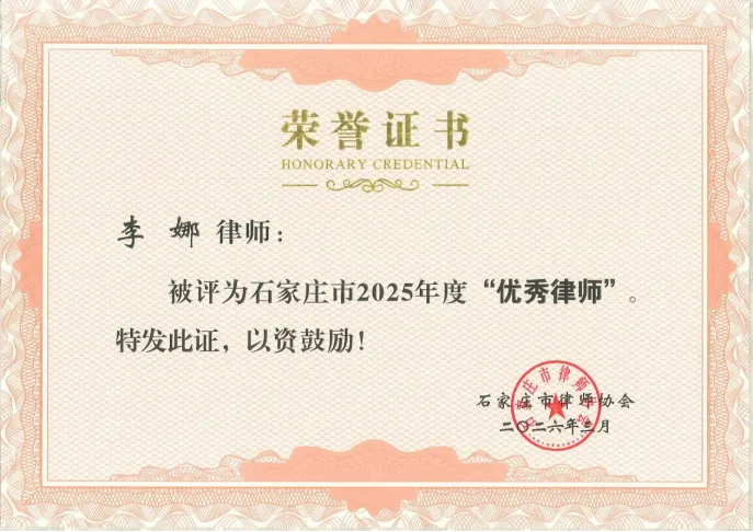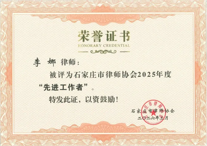 李娜律师被评选为石家庄市2025年度“先进工作者”、“优秀律师”