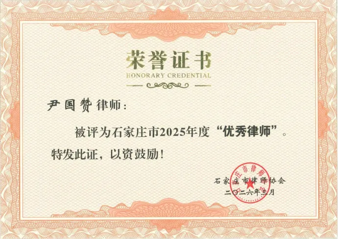 尹国赞律师被评选为石家庄市2025年度“优秀律师”