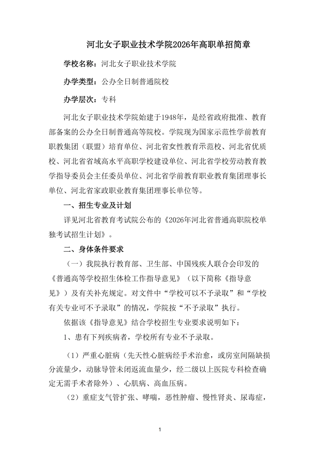 (1)符合《普通高等学校招生体检工作指导意见》中第一部分的考生,学院不予录取。