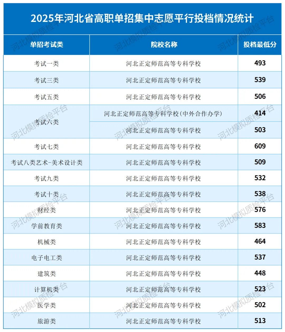 1.根据河北省考试院平行志愿投档原则,按照单招总成绩从高分到低分排序,遵循考生的志愿顺序依次录取。进档考生采取“分数优先、遵循志愿”的规则,按照招生计划录取。录取时,当遇到计划数满且多名考生总分(含政策性加分)相同时,先按职业技能考试总分由高到低排序,职业技能考试总分仍相同的,由高到低依次比较“语文、数学、专业基础(专业能力测试)、职业适应性测试(技术技能测试)”单科成绩进行录取,如果均相同,则全部录取。