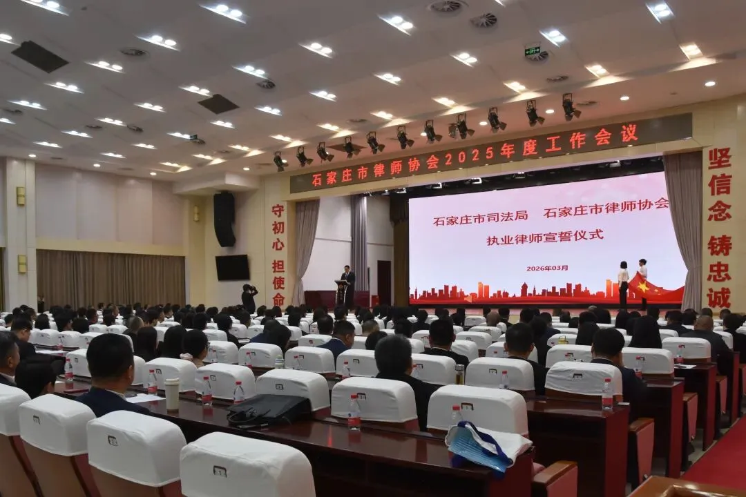张永泽副会长首先向各位新执业律师表示祝贺,并介绍了与会领导:石家庄市司法局党组书记、局长高际永担任监誓人,石家庄市律师协会副会长郭炳慧担任领誓人。接下来,2026年度石家庄市新执业律师宣誓仪式正式开始,北京市盈科(石家庄)律师事务所(下称“盈科石家庄”)新执业律师李豪、谢文卿、王朝鹏、张余、吕憬奇、靳粟鑫、杨永振、朱韬、崔笑妍、李可心、刘亮、刘逸夫、岳林青、张鹏飞、侯利敏参加宣誓仪式。全体新执业律师在庄严的氛围中,身着整齐的律师袍,佩戴律师徽章,面向国旗,右手举拳,逐句宣诵誓词,铮铮誓言,铿锵有力,同时宣誓代表在誓词上签署姓名及宣誓日期,表达了对律师行业满腔的热忱和崇高的敬意。
