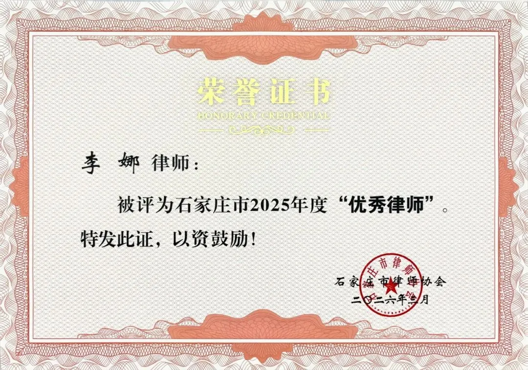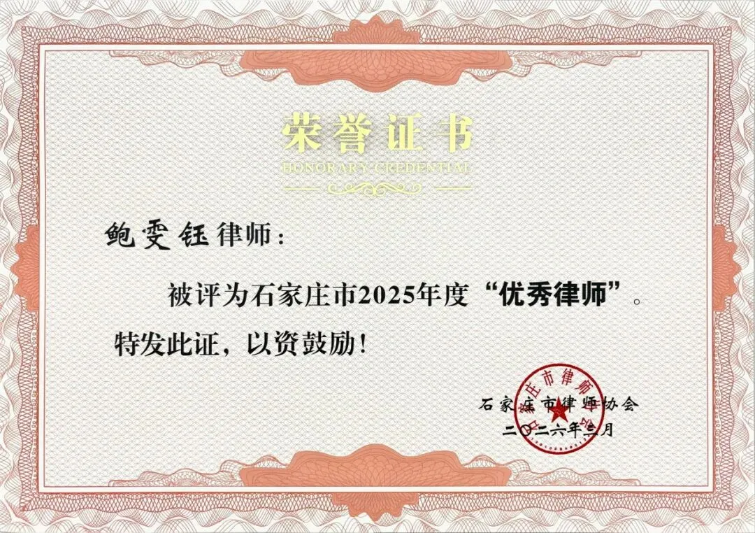 2025年度优秀律师:鲍雯钰、毕强、曹宁芝、邓薇娜、贾克然、李科达、李娜、梁天甫、刘凯、刘青凯、刘岩、孟桥、彭泽东、苏晓静、王冲、王会娟、王晓艳、王英哲、魏瑞彪、叶青、赵媛