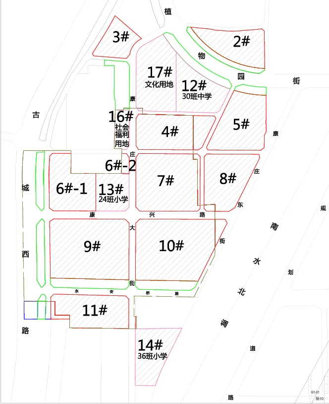 该项目位于西至古城西路,东至南水北调,南至和平路,北至植物园街,用地性质为居住、商服、中小学用地。拟建设7757套住宅,配建1所30班中学、1所24班小学、1所36班小学、3所幼儿园,1处便民市场,以及社会福利场所和文化活动中心。