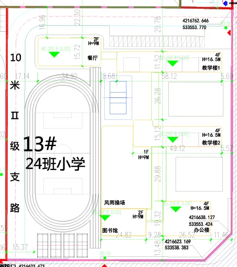 24班小学位于13#地块,实用地面积17313.757平方米,教工人数57人,学生人数1080人。