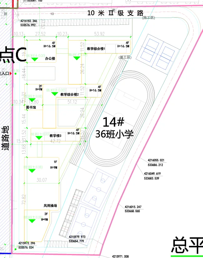 36班小学位于14#地块,实用地面积26043.434平方米,教工人数86人,学生人数1620人。
