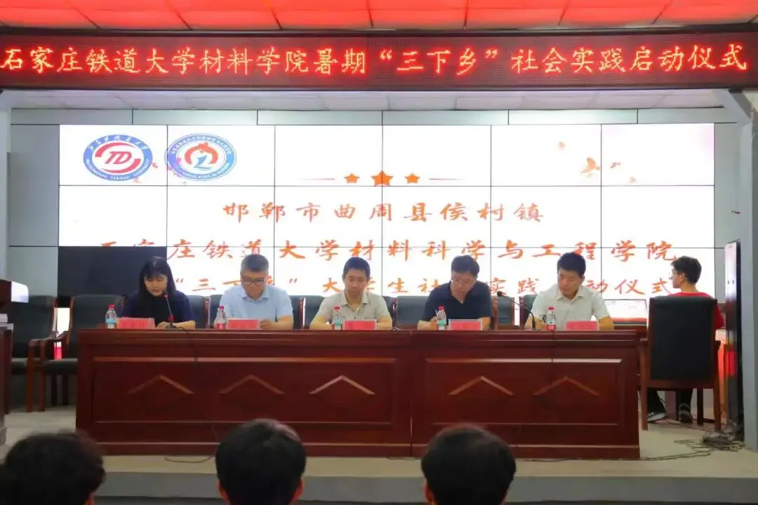 活动启动仪式在邯郸市曲周县侯村镇政府报告厅举行。侯村镇党委书记潘艳平、副书记吴建胜,石家庄铁道大学材料学院党委书记聂辉及实践团队全体师生成员参加。