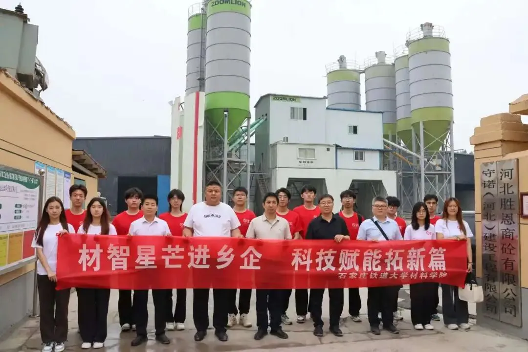第二站,实践团队前往河北胜恩商砼有限公司,深入实验室和生产车间,刘亚州老师和企业技术人员结合企业生产实际,为团队成员进行了现场教学,让实践团队成员对这一先进检测技术有了更直观的认识和了解。