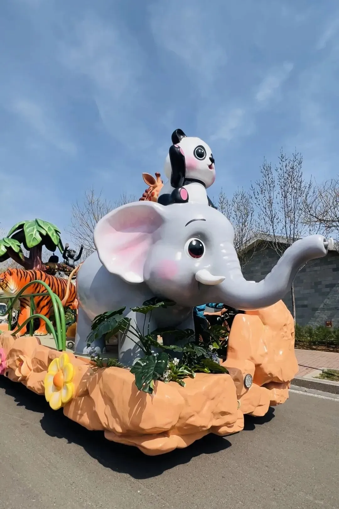 整个巡游队伍阵容丰富,花车、花仙子演艺团队与动物互动方阵错落有致、梦幻联动,在游园踏青的同时,还能沉浸式感受春日童话般的欢乐氛围。