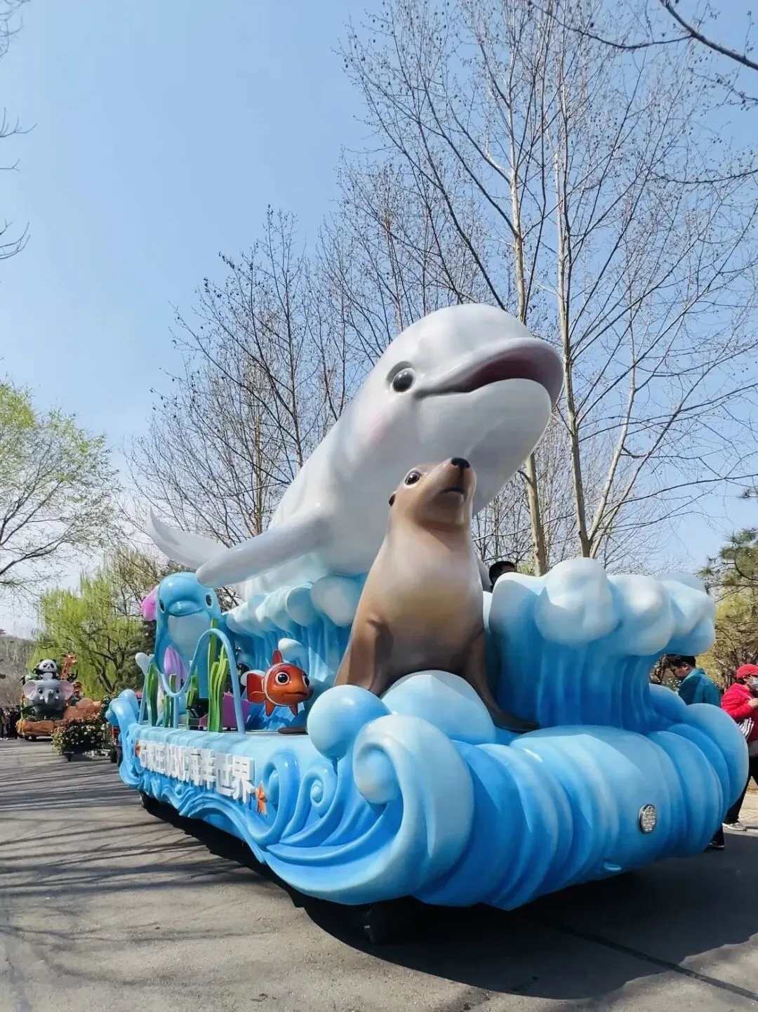 春日定制花车惊艳亮相,以烂漫鲜花、清新绿植精心装饰,融入海洋动物灵动元素,色彩温馨绚丽,造型别致梦幻,如同移动的春日花海秘境,成为巡游路上最吸睛的打卡点。