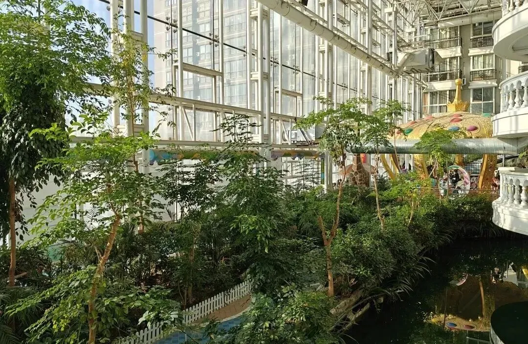园内移植了50余种来自广东、海南等沿海地区的热带、亚热带植物,搭配假山塑石和大面积水域,仿佛把“南方雨林”搬到了北方内陆城市,满足了石家庄人近距离欣赏热带风光的需求。