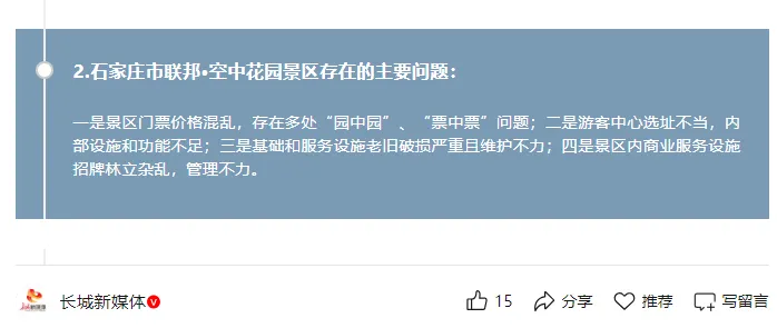 2017年,空中花园被取消4A级景区资质并被摘牌。
