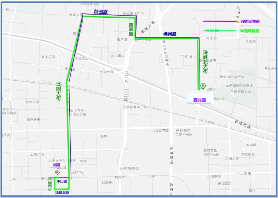 3.调后路径:珠峰大街、绵河路、青翠街、荷园路、谈固大街、中山路、建明北路、谈固西街、中山路、谈固大街返回。