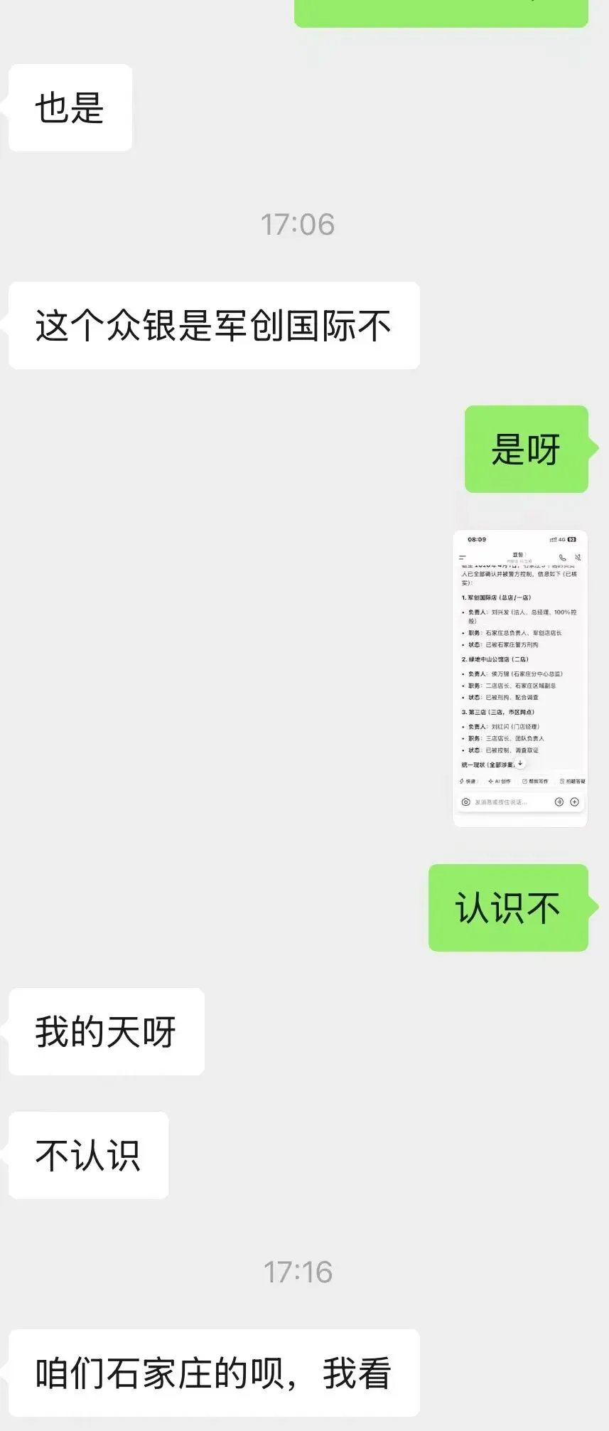 ◦ “石家庄分公司人都被带走了”