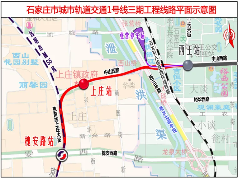 石家庄地铁1号线三期工程西起槐安路站,东至西王站,沿上庄大街、中山西路敷设,线路全长3.77公里,设2座车站2个正线区间、1个明挖区间。作为1号线西延线,该工程承担着连接中心城区与鹿泉区的关键使命,建成后将实现中心城区与上庄区域“半小时”交通圈。