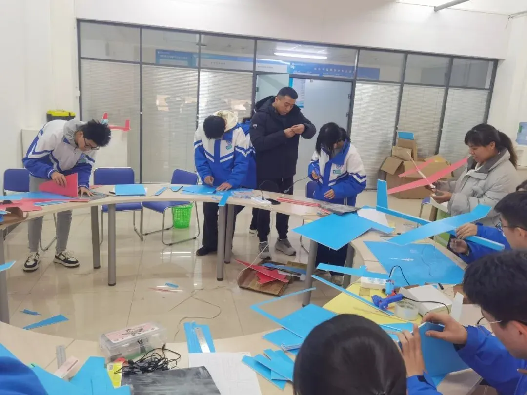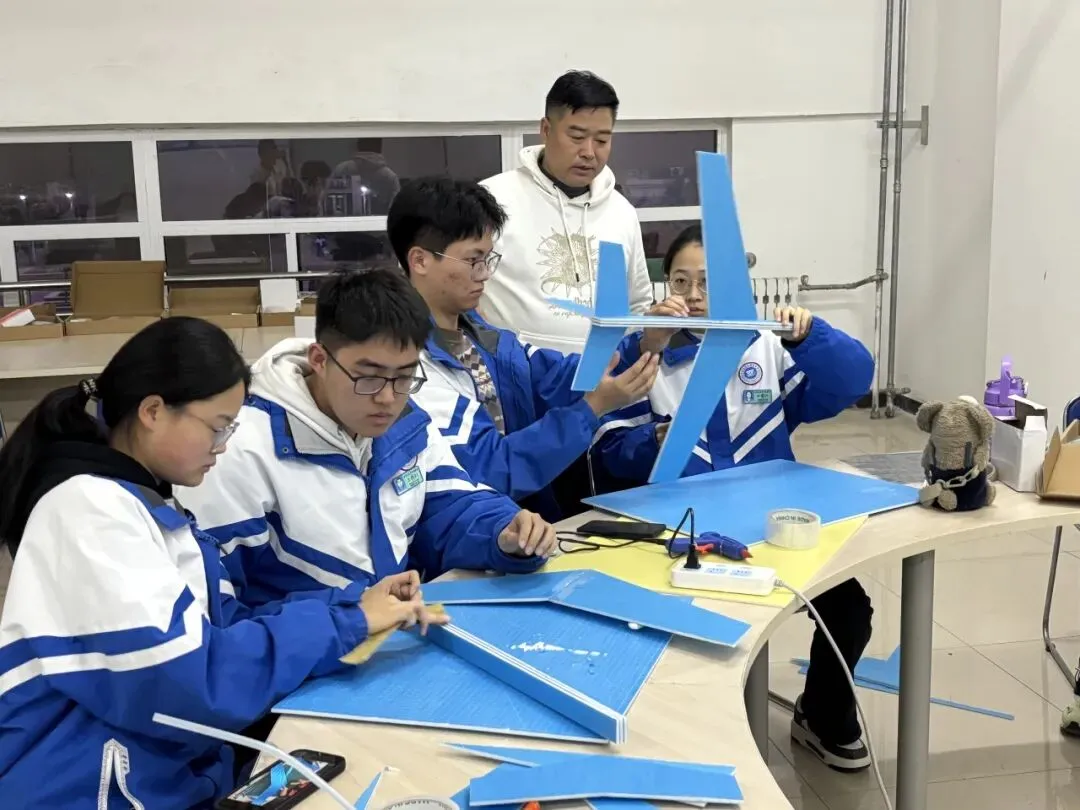 训练过程中,师生们始终践行“做中学、学中练”的育人理念,将物理力学、空气动力学等课本知识与实操训练深度融合。从飞机模型的裁剪、拼接、组装,到机翼重心的精准校准,再到投掷姿态的反复优化,每一个环节都精益求精,在不断打磨细节中突破技术瓶颈与心态障碍,以扎实的准备迎接省级赛事的考验。
