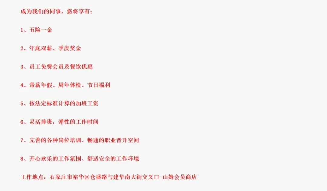 根据裕华区人民政府发布的官方招聘公告,石家庄山姆的岗位薪酬体系,直接打破了石家庄零售行业的薪资天花板: