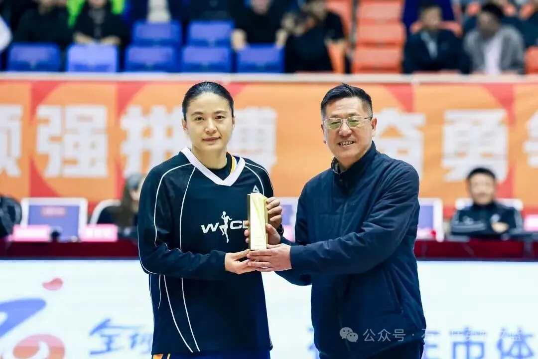 颁奖现场,石家庄市体育局党组书记、局长任维维为王丽丽颁发奖杯,肯定其为石家庄篮球事业作出的贡献,同时寄语石家庄英励女篮全体队员,以王丽丽为榜样,在后续赛事中再接再厉、再创佳绩。