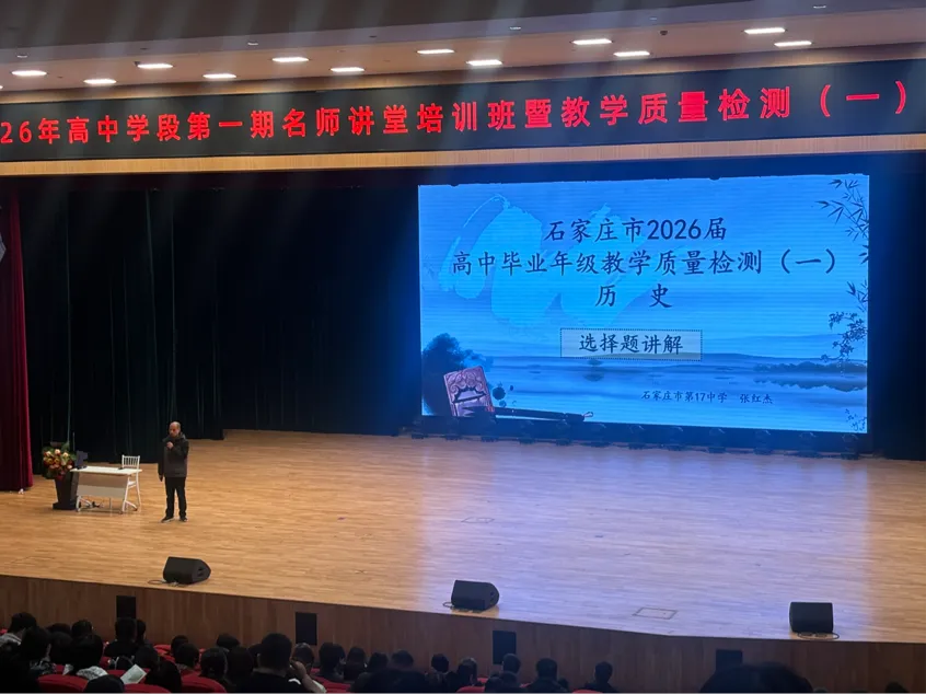 2026年4月1日上午,石家庄市教科所主办的“高中学段第一期名师讲堂培训班暨教学质量监测(一)分析会·历史学科”会议在石家庄瀚林学校召开。