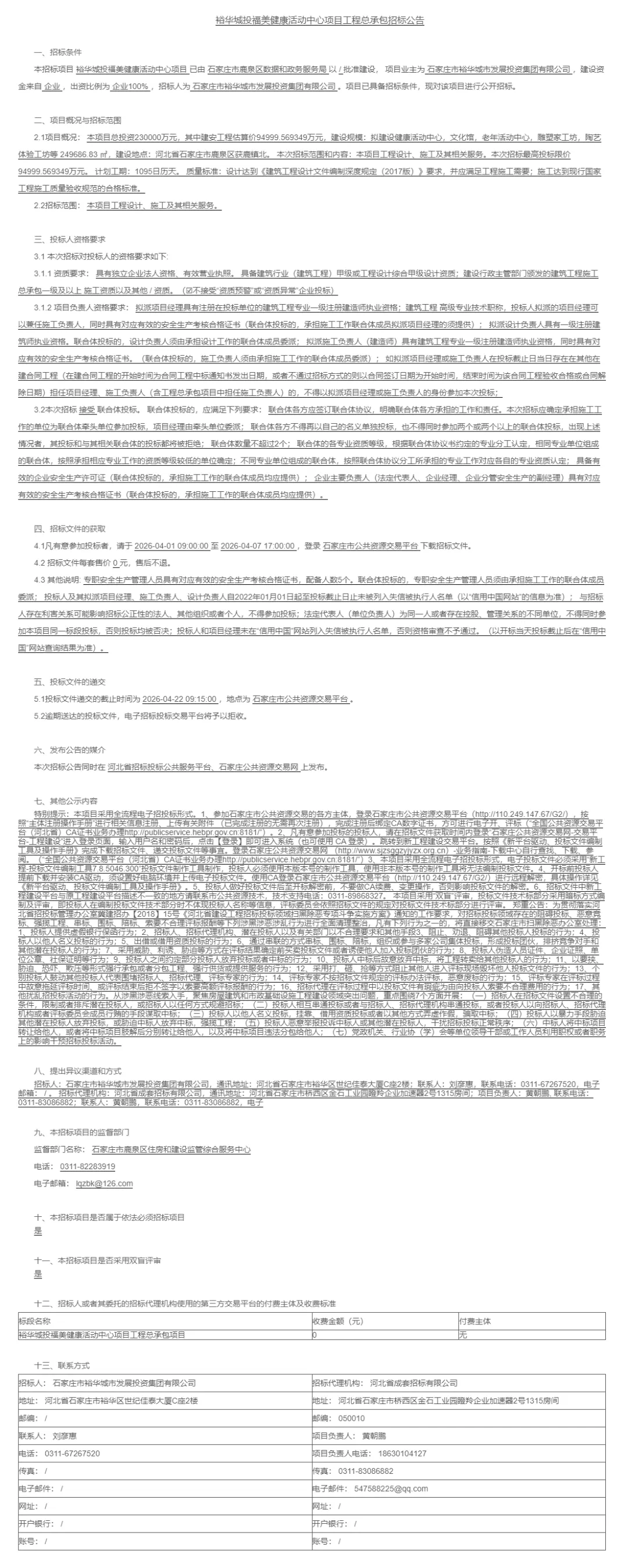 (信息来源:石家庄公共资源交易网)