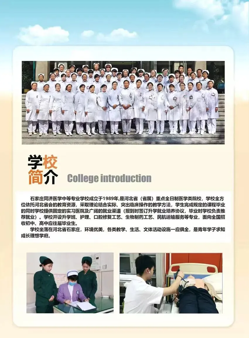 《石家庄同济医学中等专业学校》,是省属重点全日制医学中等院校,全国就业百强学校。
