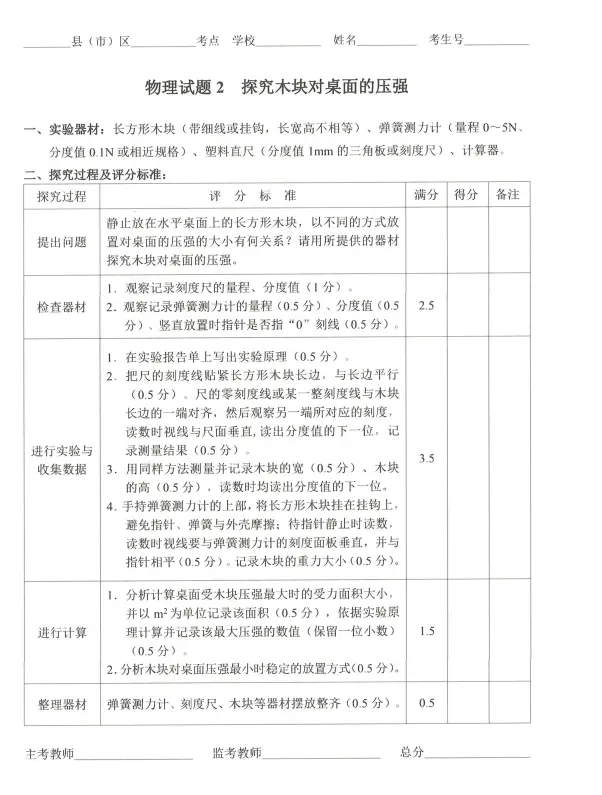 实验二 探究木块对桌面的压强