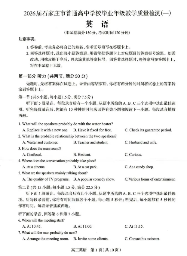 高三试卷:https://pan.baidu.com/s/1ZOow9kyygLdJPcxoy6EQ0Q?pwd=1111 提取码: 1111