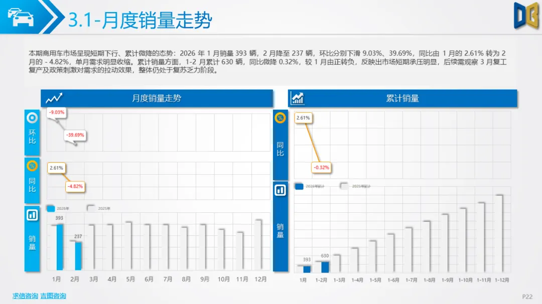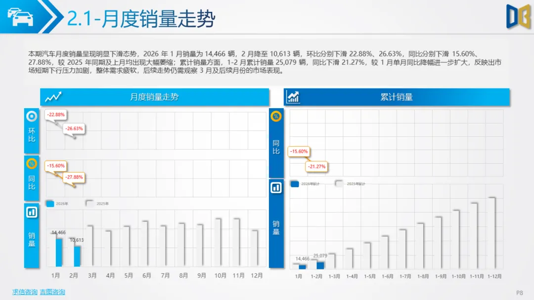 销量走势:1-2月销量同比大跌41.90%,单月同比降幅扩大至60.24%,需求收缩显著。