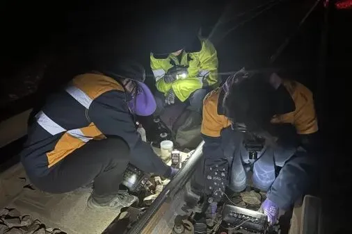 近日,探伤车间作业人员在柳辛庄站 25# 道岔开展新焊缝探伤作业,作业人员严格执行探伤作业标准,对新焊焊缝进行全方位、无死角扫查,精准检测焊缝内部质量,严把焊缝验收关口,切实防范线路安全隐患,为铁路线路安全平稳运行筑牢坚实防线。(通讯员 李盼)