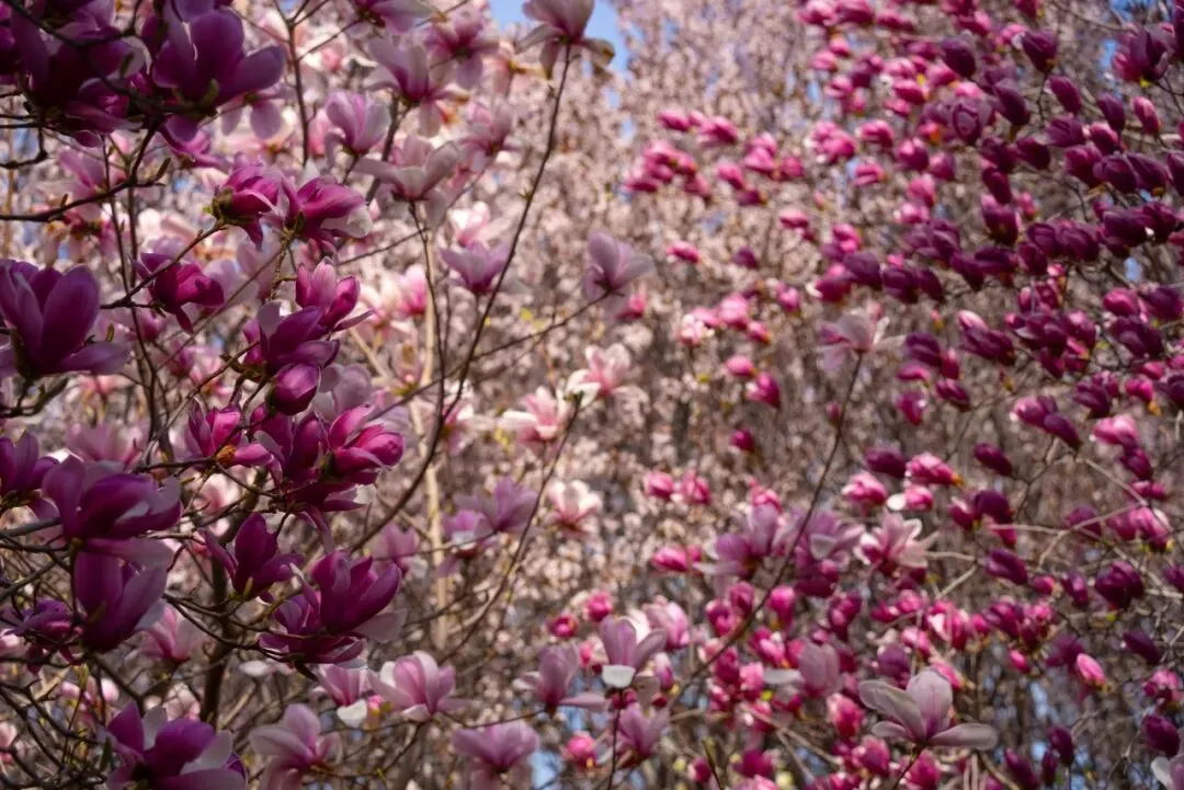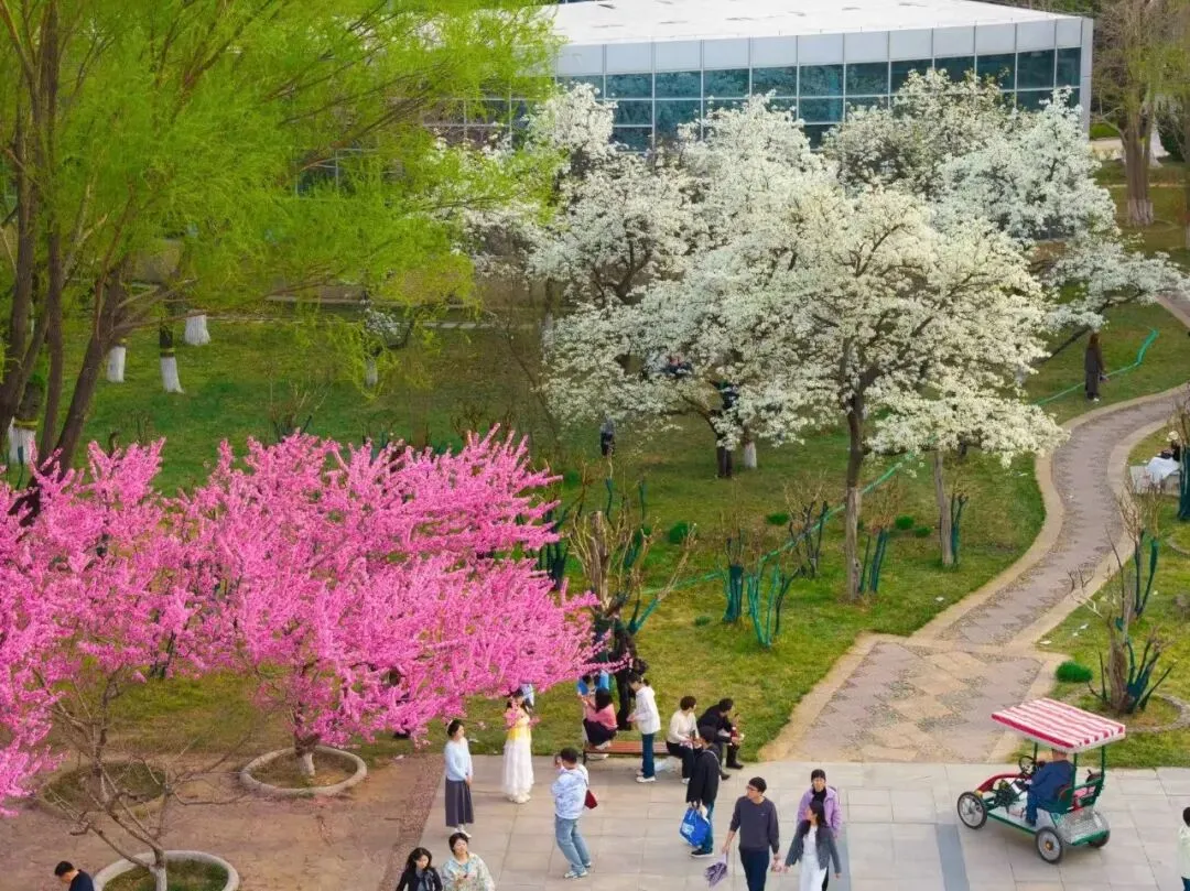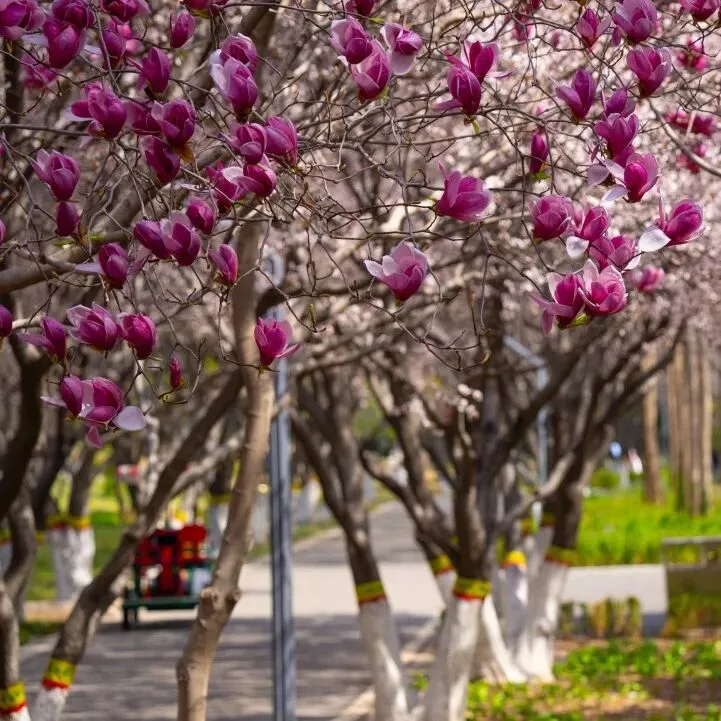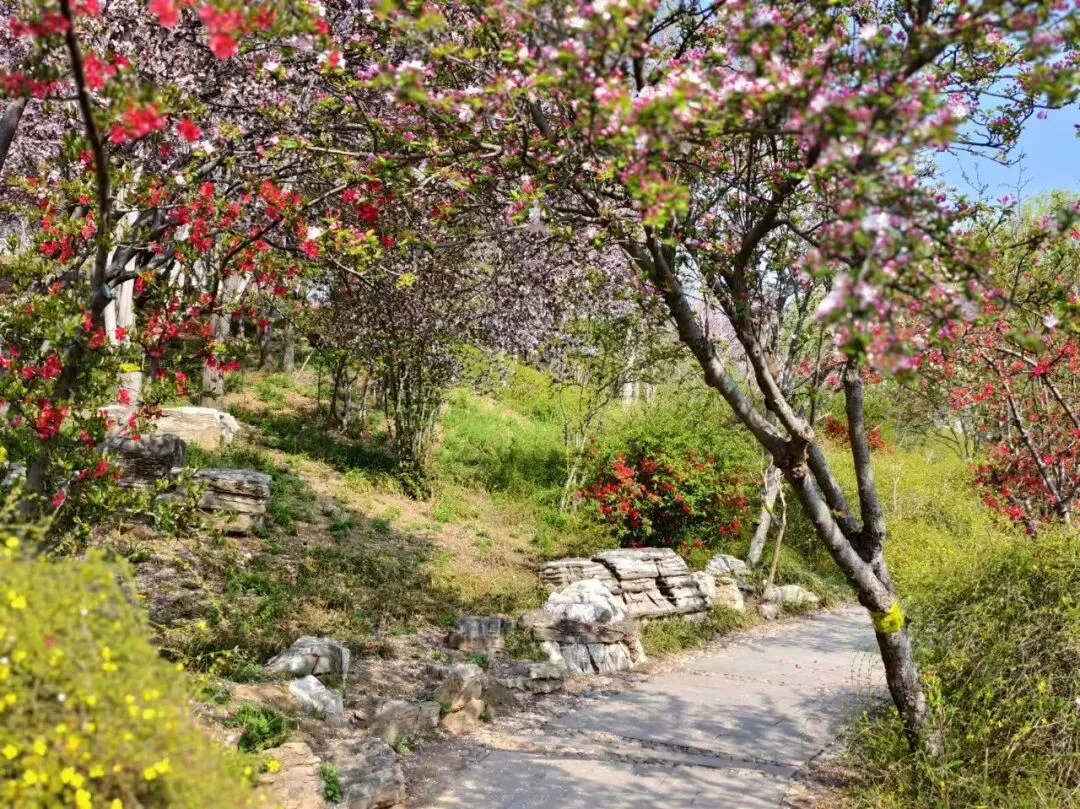 每年清明,恰是植物园海棠花开的最美时节,作为春日花事的重头戏,园区的海棠花海已然迎来最佳观赏期。园内现有西府海棠、垂丝海棠、木瓜海棠、现代海棠等20多个品种,共计3000余株,种植面积达30000余平方米,主要集中在海棠飞瀑、滨湖东路等地。四月伊始,木瓜海棠率先绽放拉开海棠花事序幕,西府海棠、垂丝海棠、现代海棠相继盛开,花枝繁密、灿若云霞,层层叠叠的花瓣将枝头装点得格外绚烂。海棠飞瀑景区叠石成山,7.8米高的山石瀑布灵动雅致,造就自然山水之景,微风拂过,海棠花瓣飘落,随溪水顺流而下,沉浸式诠释“绿肥红瘦、海棠依旧”的温柔美景。
