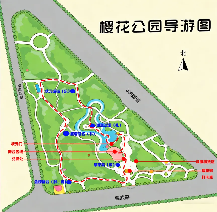 ●特色美食区:汇集樱花主题美食(樱花酥、樱花茶、樱花冰淇淋等)特色小吃