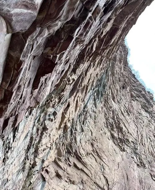你走在那条栈道上,脚下是透明的玻璃,再往下是三百米的垂直悬崖,对面是九女峰的整个剖面,你能清楚地看到那些红色的岩层是怎么一层层堆叠起来的,能看到每一层岩石的厚度和纹理,能看到山体是怎么被风化、被侵蚀、被切割成现在这个样子的。这种视角在别的地方很难有,因为大部分山要么不够高,要么没有这么完整的垂直剖面,要么就是没有修出这么一条能让你贴着崖壁走的栈道。
