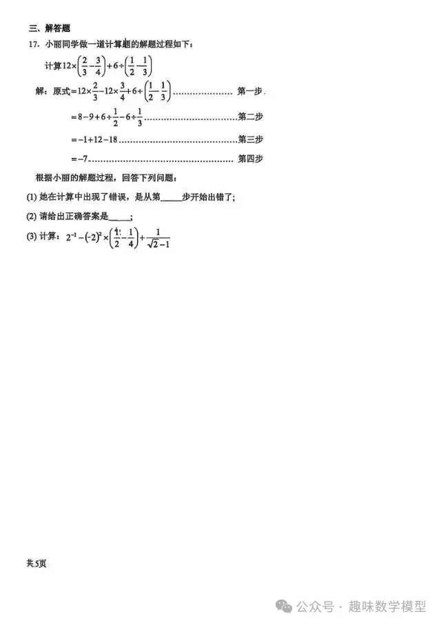 2026.3石家庄28中七年级开学测试数学试卷