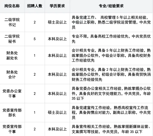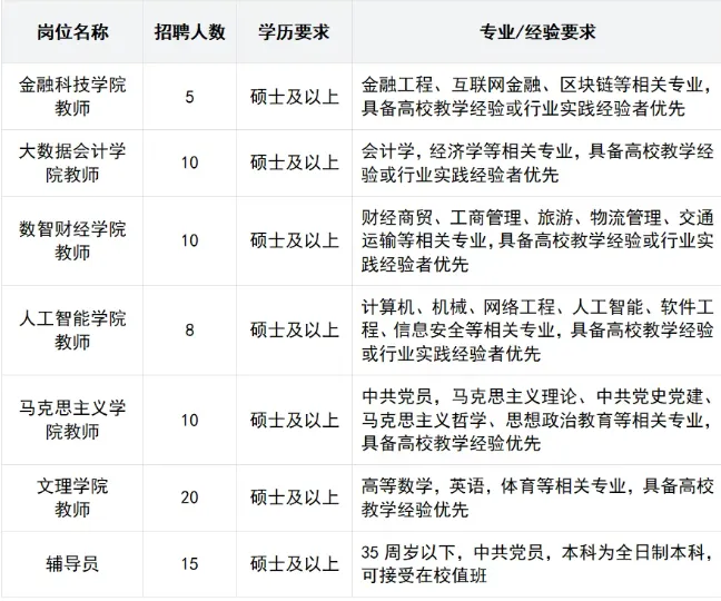📢 石家庄金融职业学院2026年招聘公告
