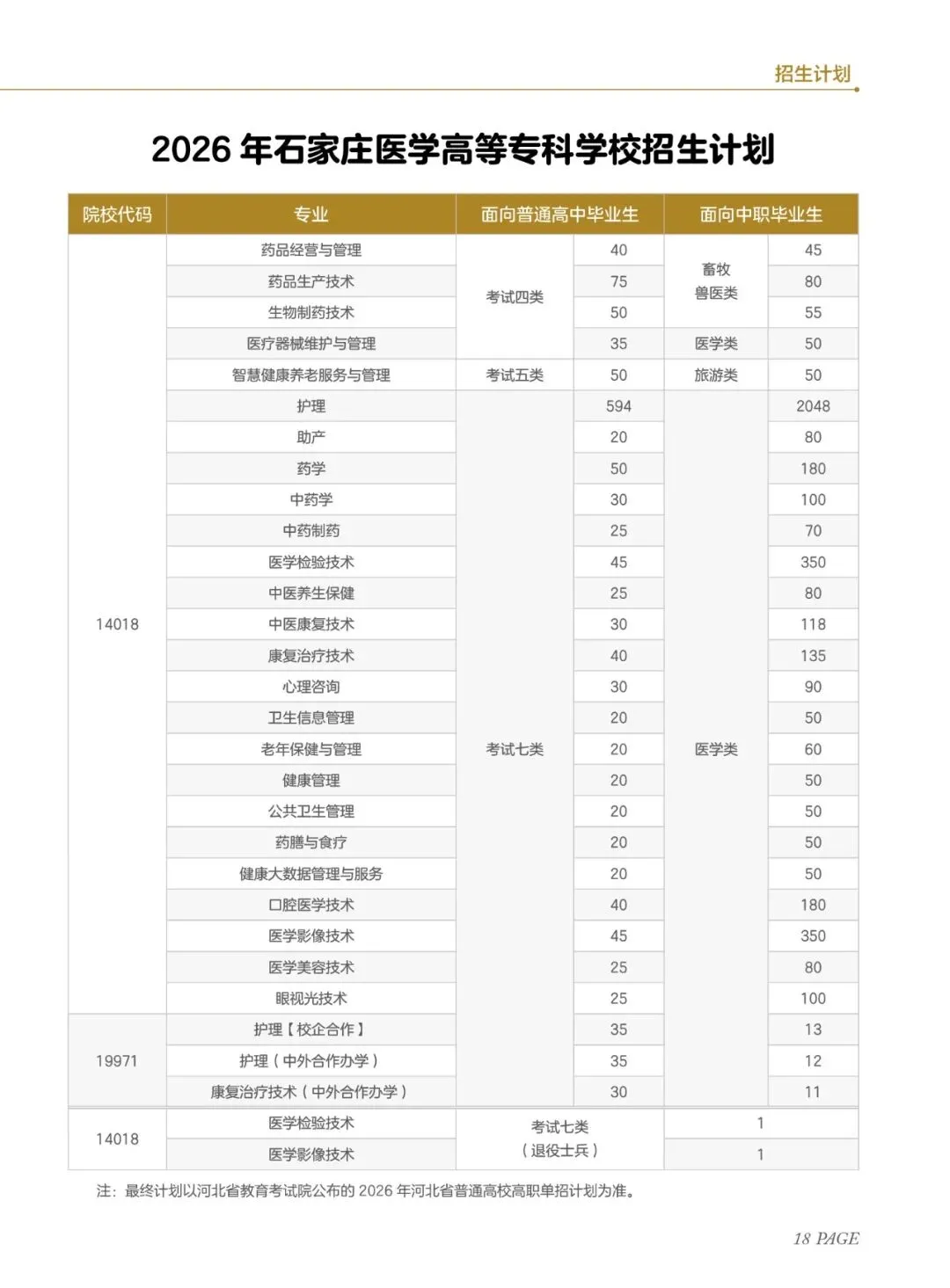 >2026年石家庄医学高等专科学校高职单招招生简章