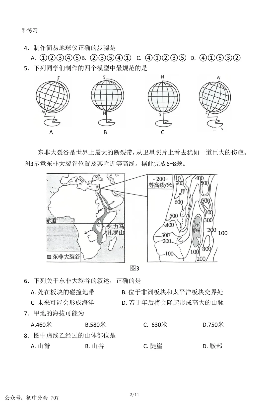 >2026.3石家庄市43中初二地生模考试卷(可打印)