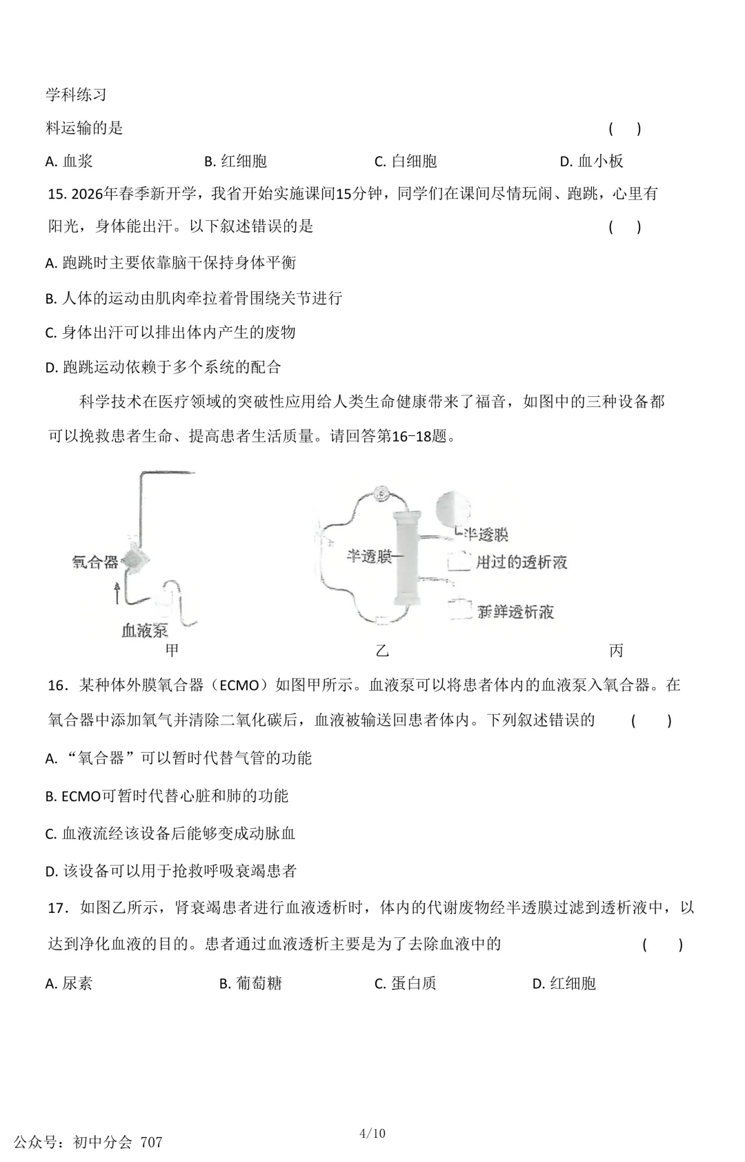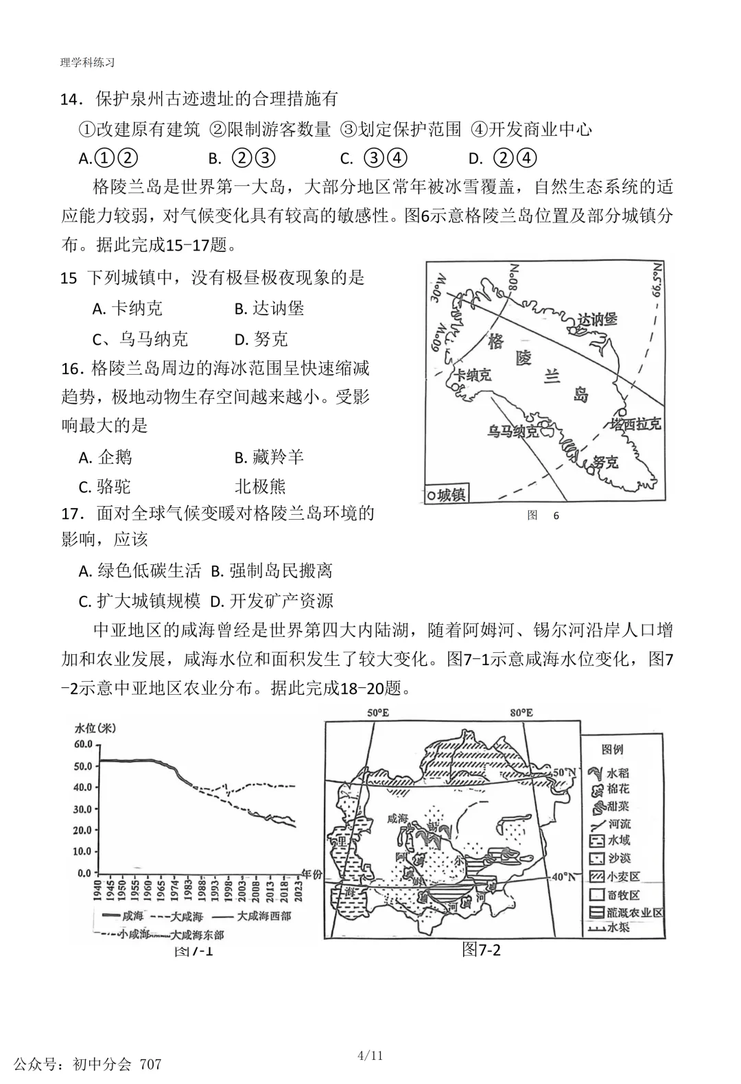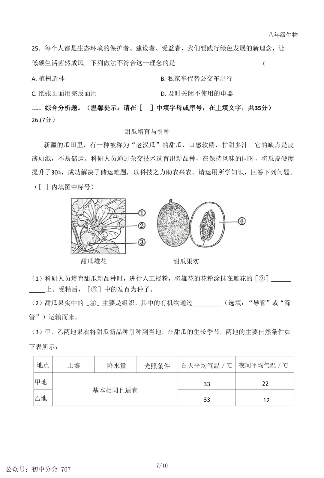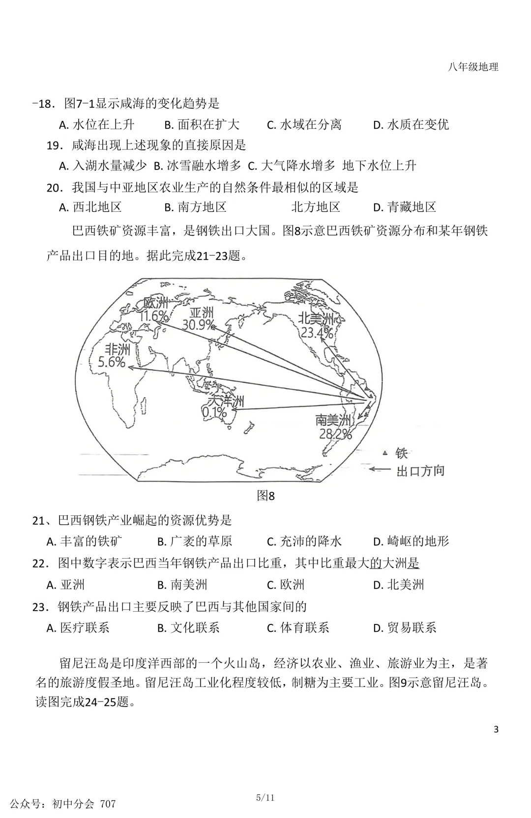 2026.3石家庄市43中初二地生模考试卷(可打印)