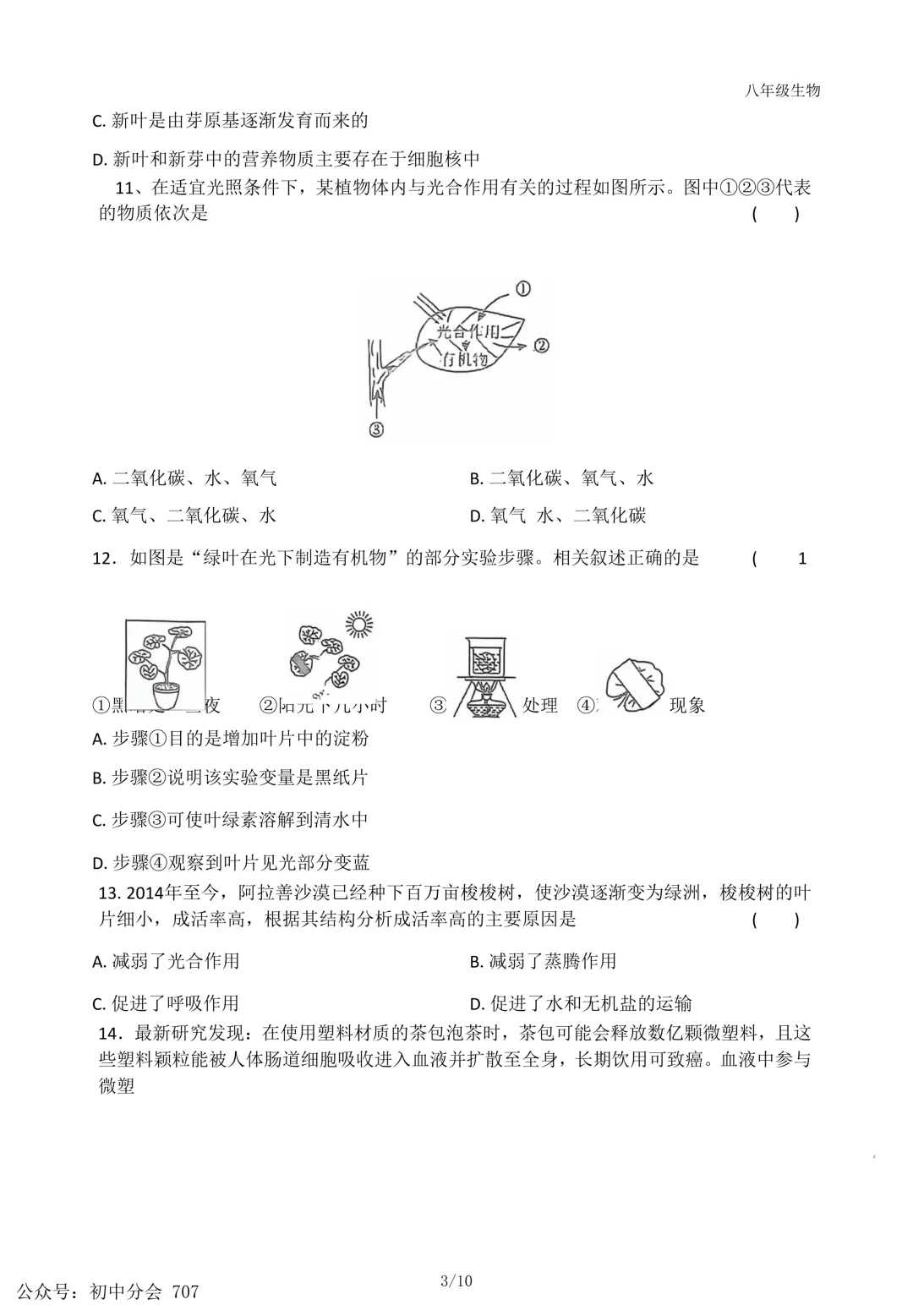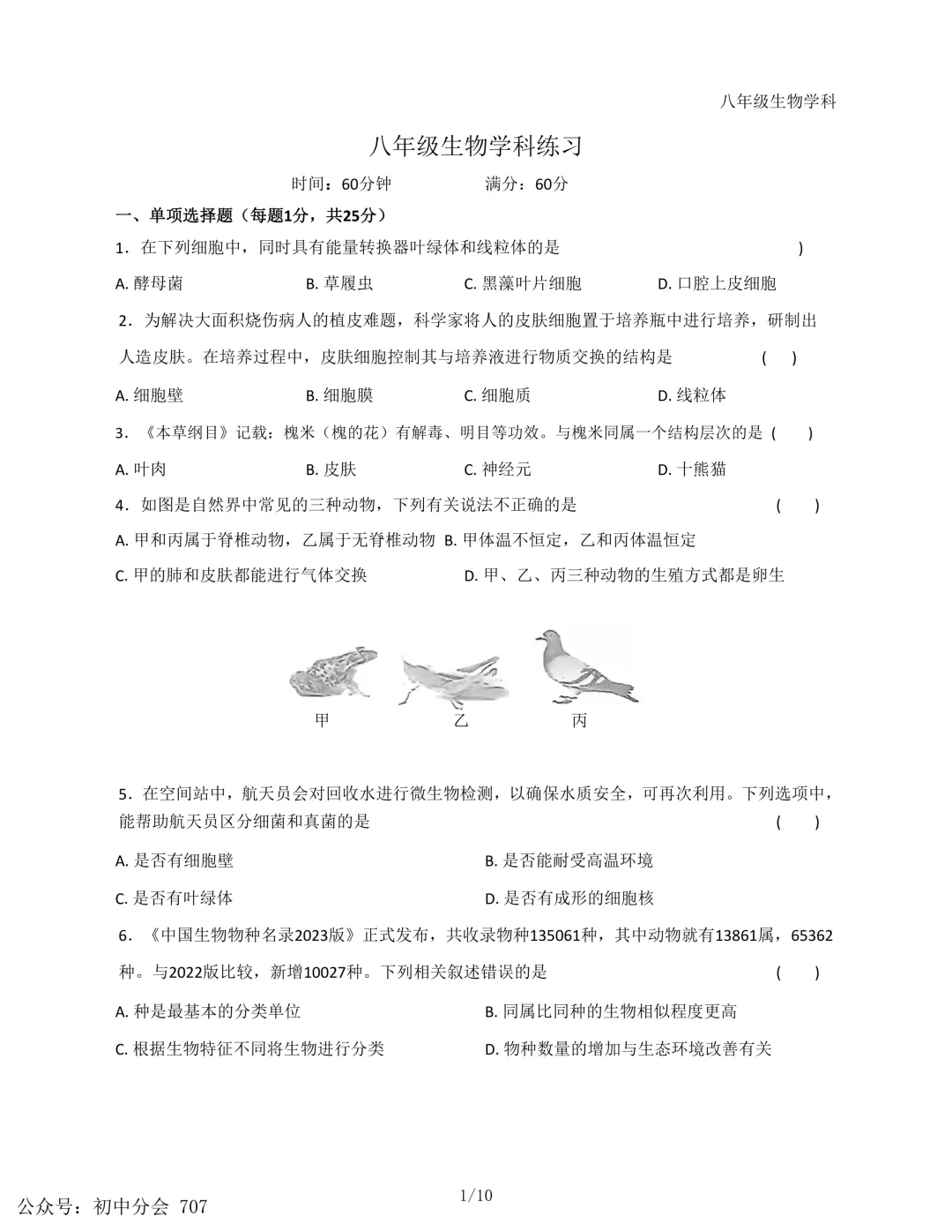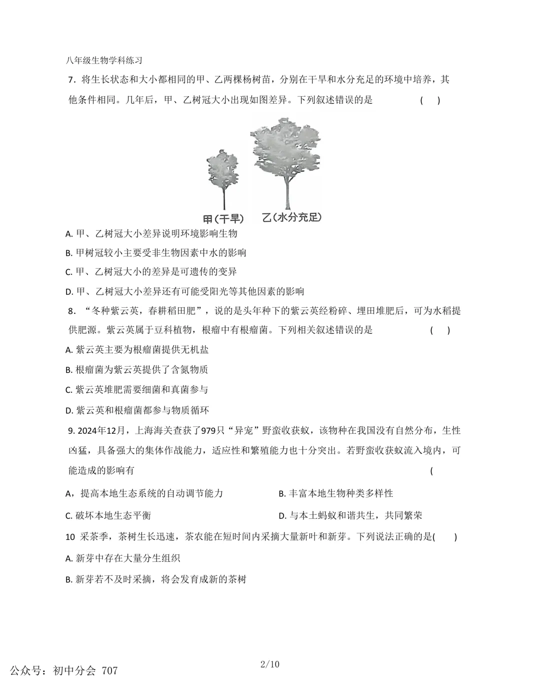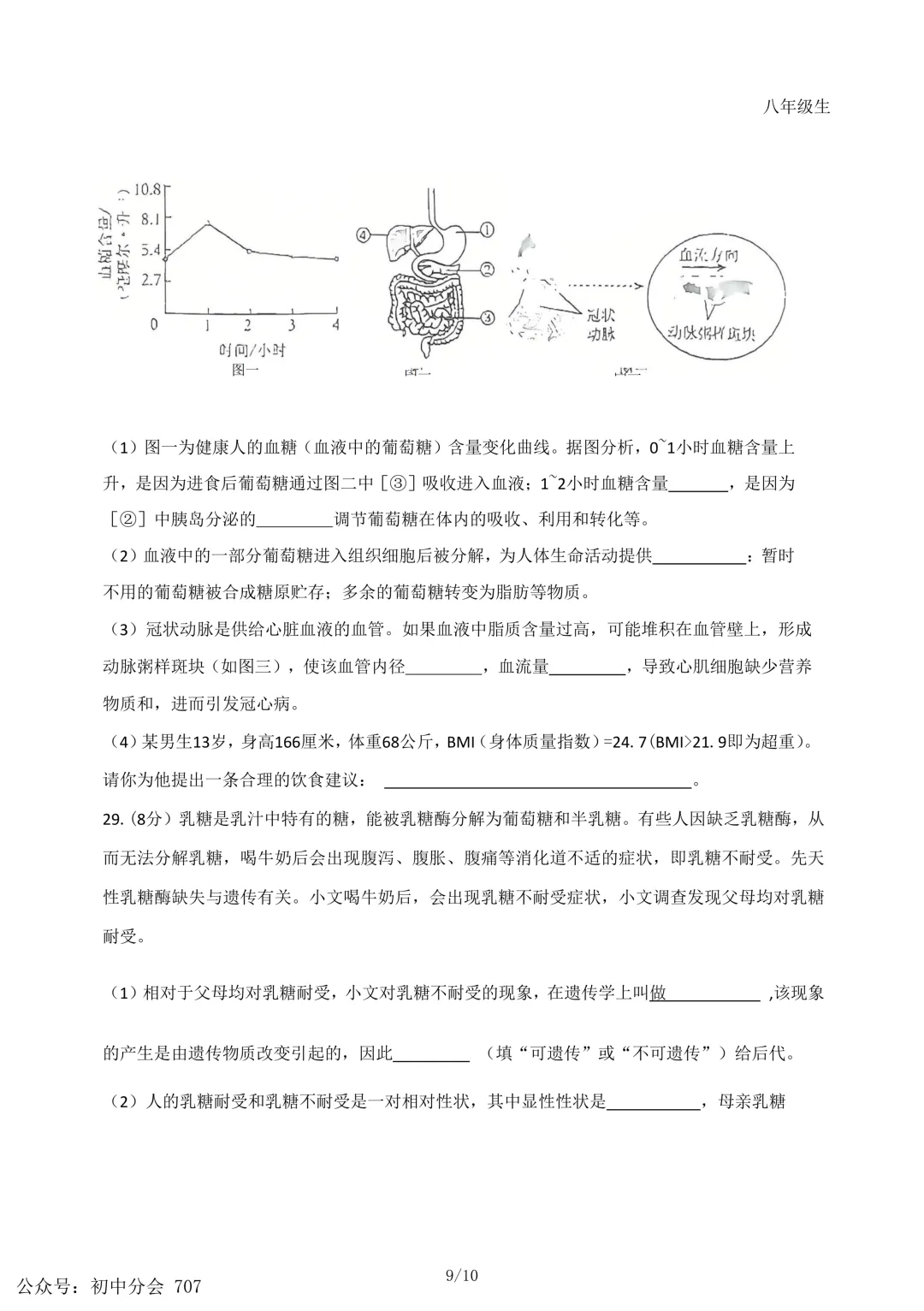 2026.3石家庄市43中初二地生模考试卷(可打印)