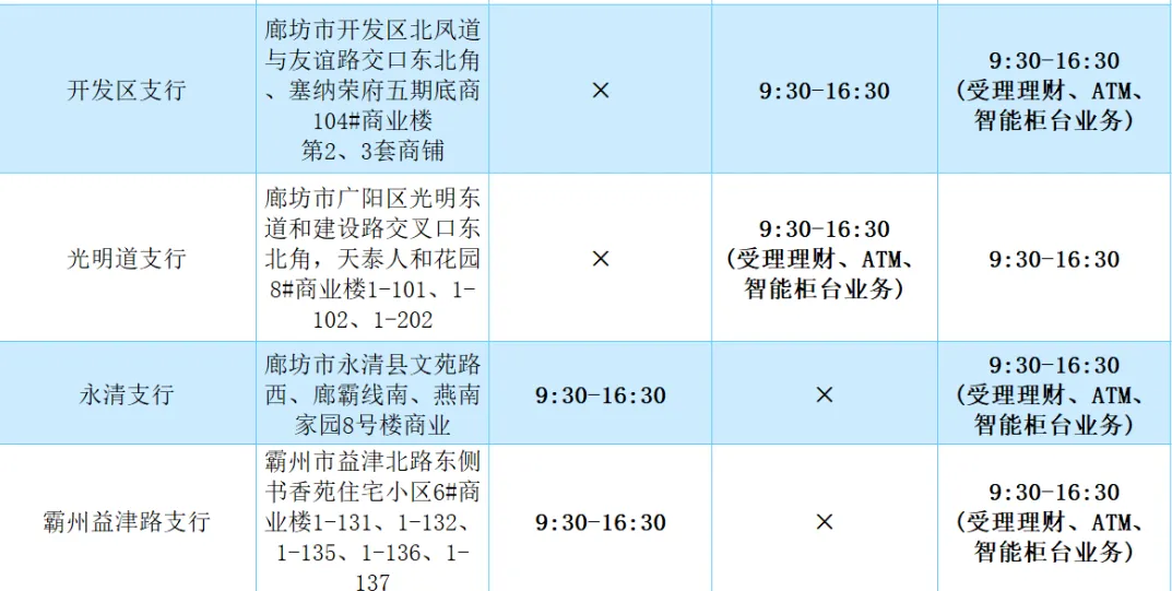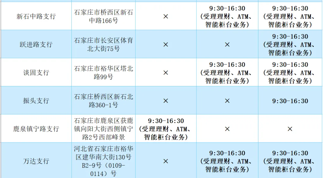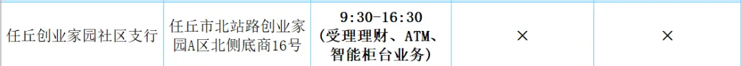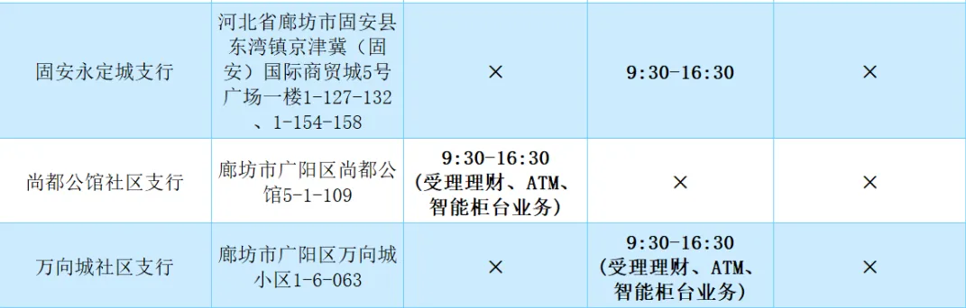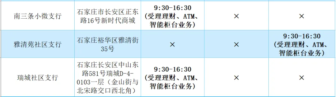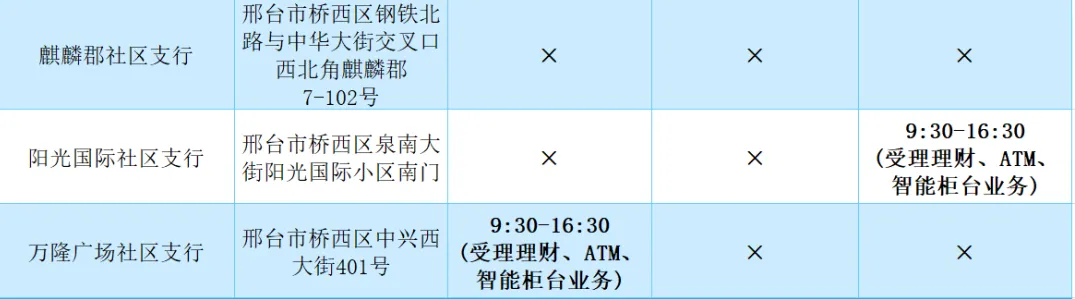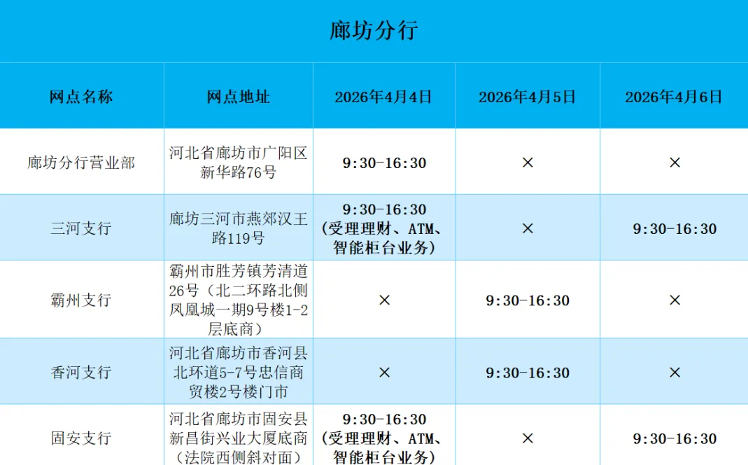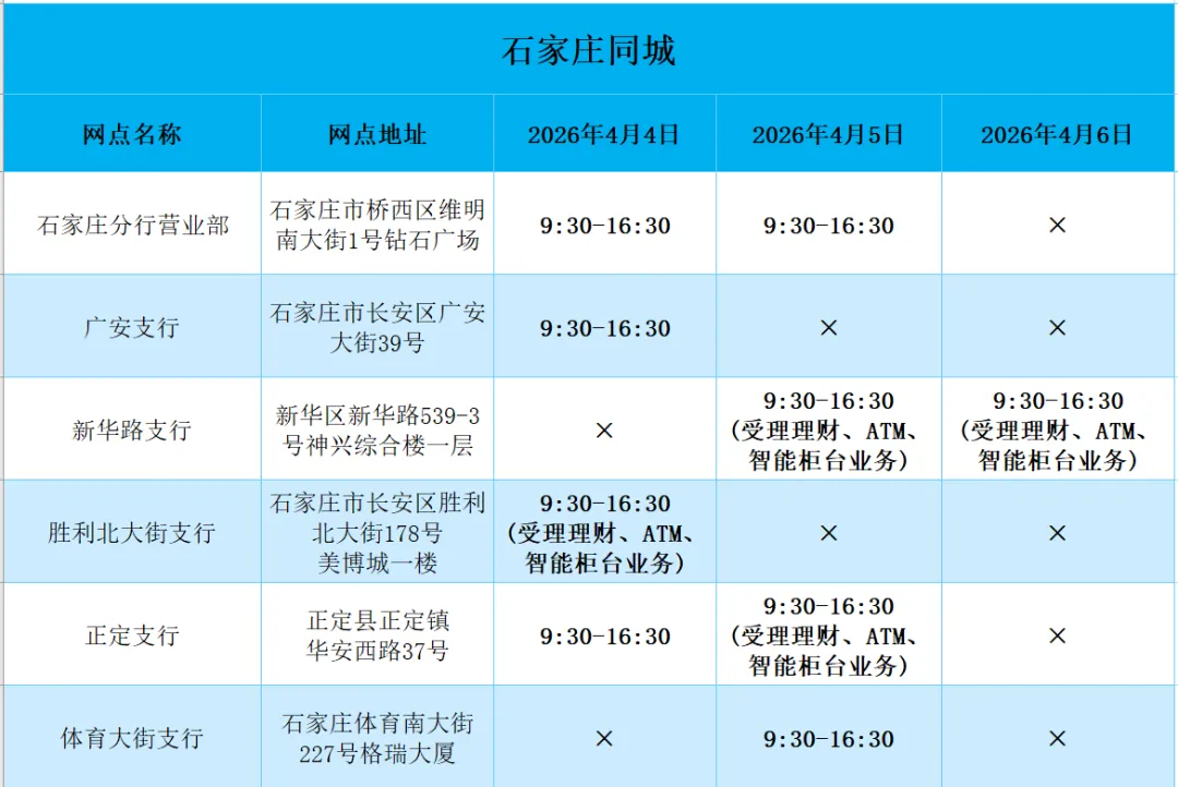 2026年清明假期营业网点安排如下