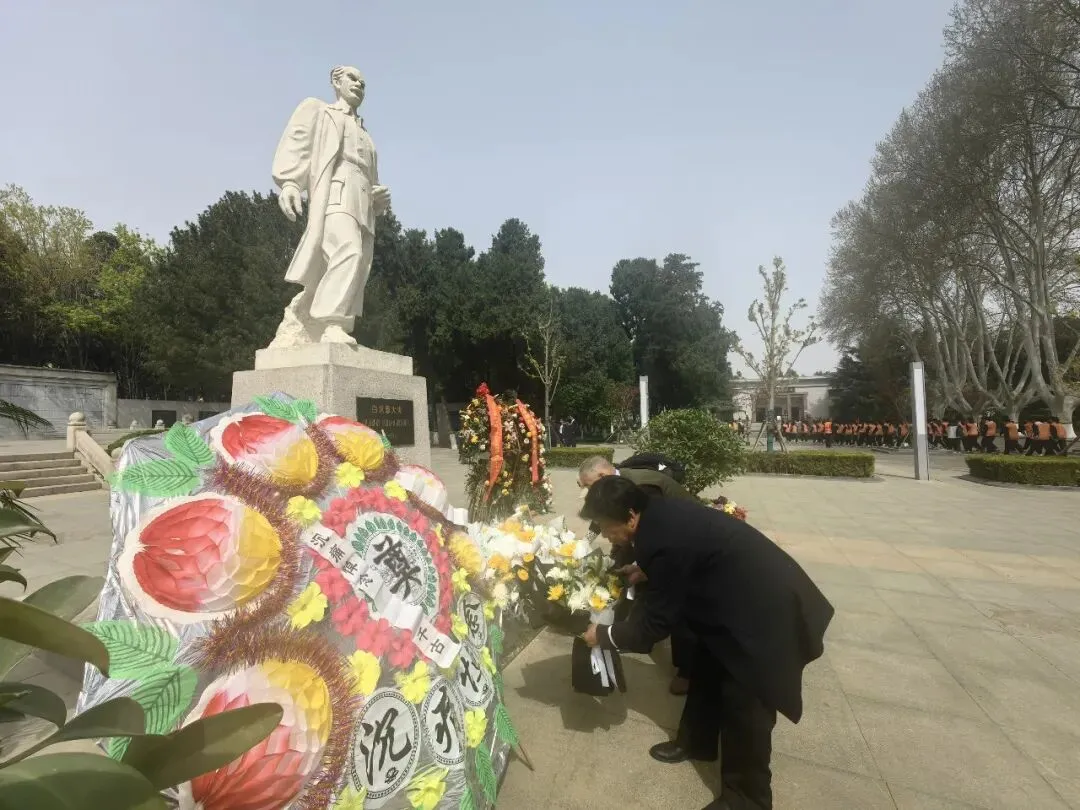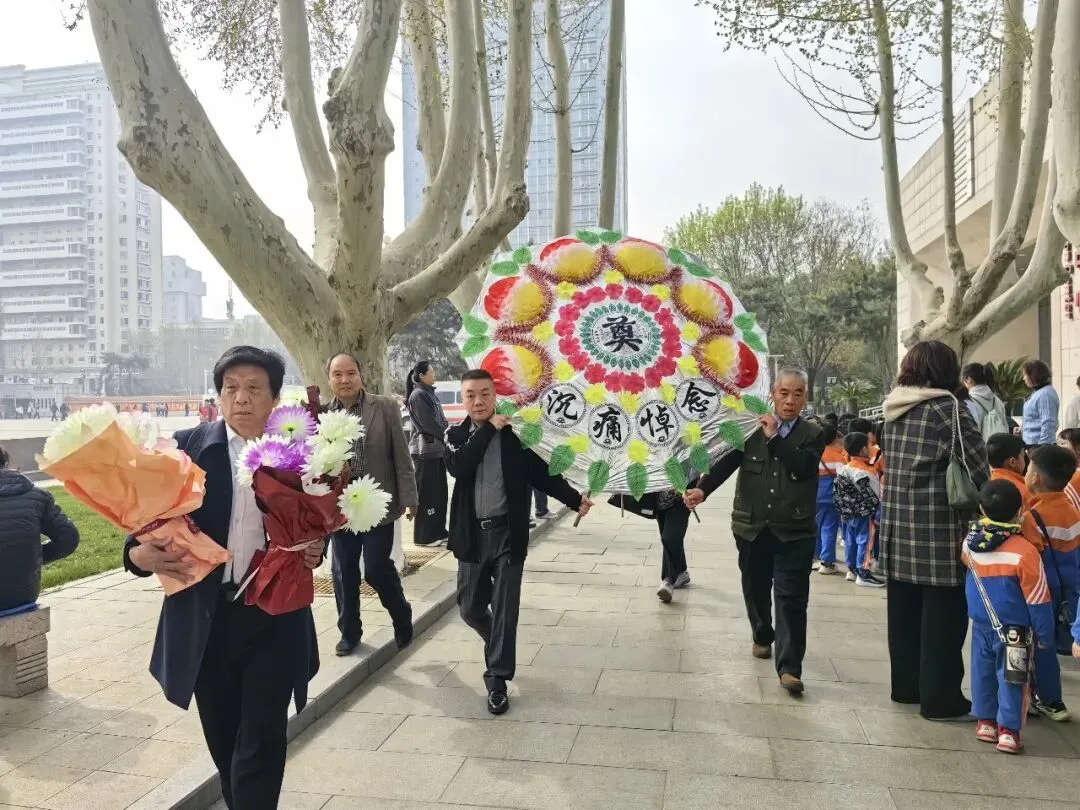 全体人员肃立于纪念碑前,鞠躬默哀,依次敬献花圈与鲜花,表达对先烈的无限追思与崇高敬意。