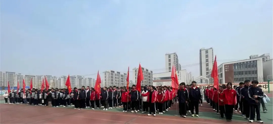 午后的校园,旌旗猎猎,少年整装。13:30,全体师生及家长齐聚操场,远足活动启动仪式由高中教育处主任赵志国老师主持,自此,远足活动正式拉开帷幕。整队完毕,郭朝辉副校长寄语学子,字字句句饱含殷切期盼,为即将踏上征程的少年们注入前行的力量;高二4班焦佳奇同学作为学生代表登台发言,以铿锵誓言道出全体同学的决心,承诺将以坚韧之姿走好远足路,以少年之勇践行成人担当。