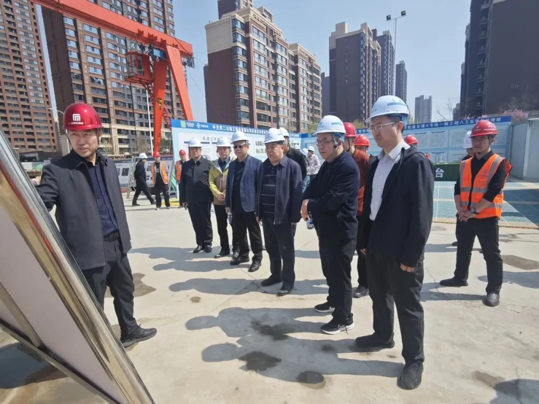 调研组一行深入东垣东路铺轨基地施工现场,实地察看项目当前建设进度、安全环保管控、消防设施配备、机械设备运行等情况,听取了项目施工计划、安全保障措施等方面的专题汇报。