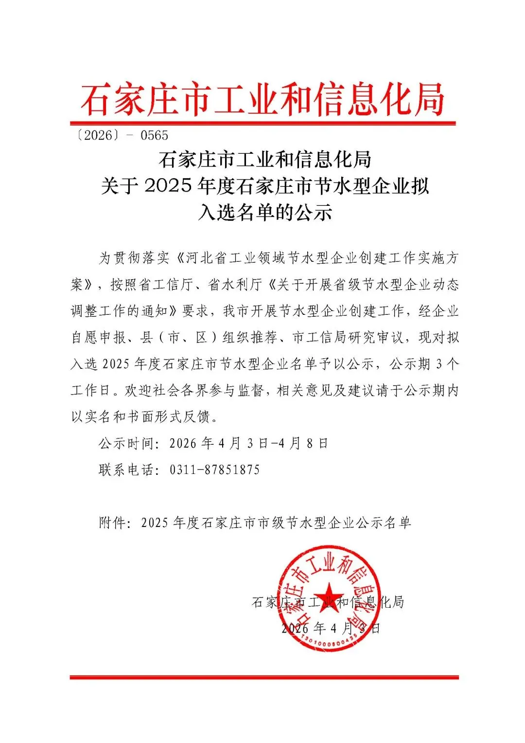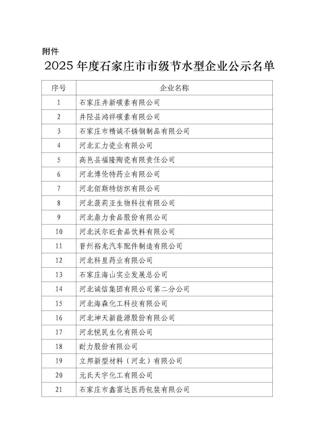 >『石家庄市』关于2025年度石家庄市节水型企业拟入选名单的公示