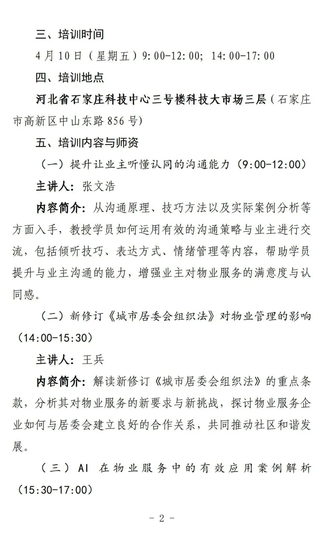 『4月10日石家庄』中国物业管理协会公益大讲堂线下培训开讲
