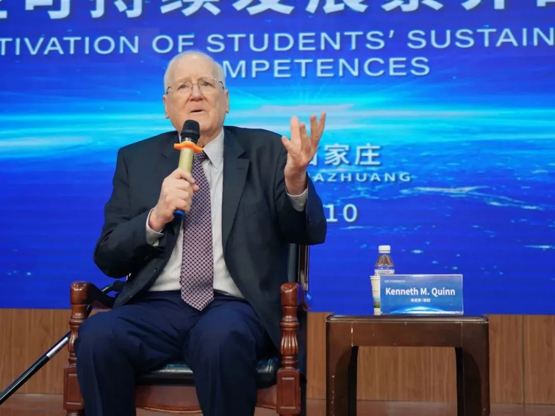 世界粮食奖基金会荣誉主席肯尼思·奎因大使、中国清华大学教育研究院院长、教授、博士生导师石中英等分别在大会上做报告