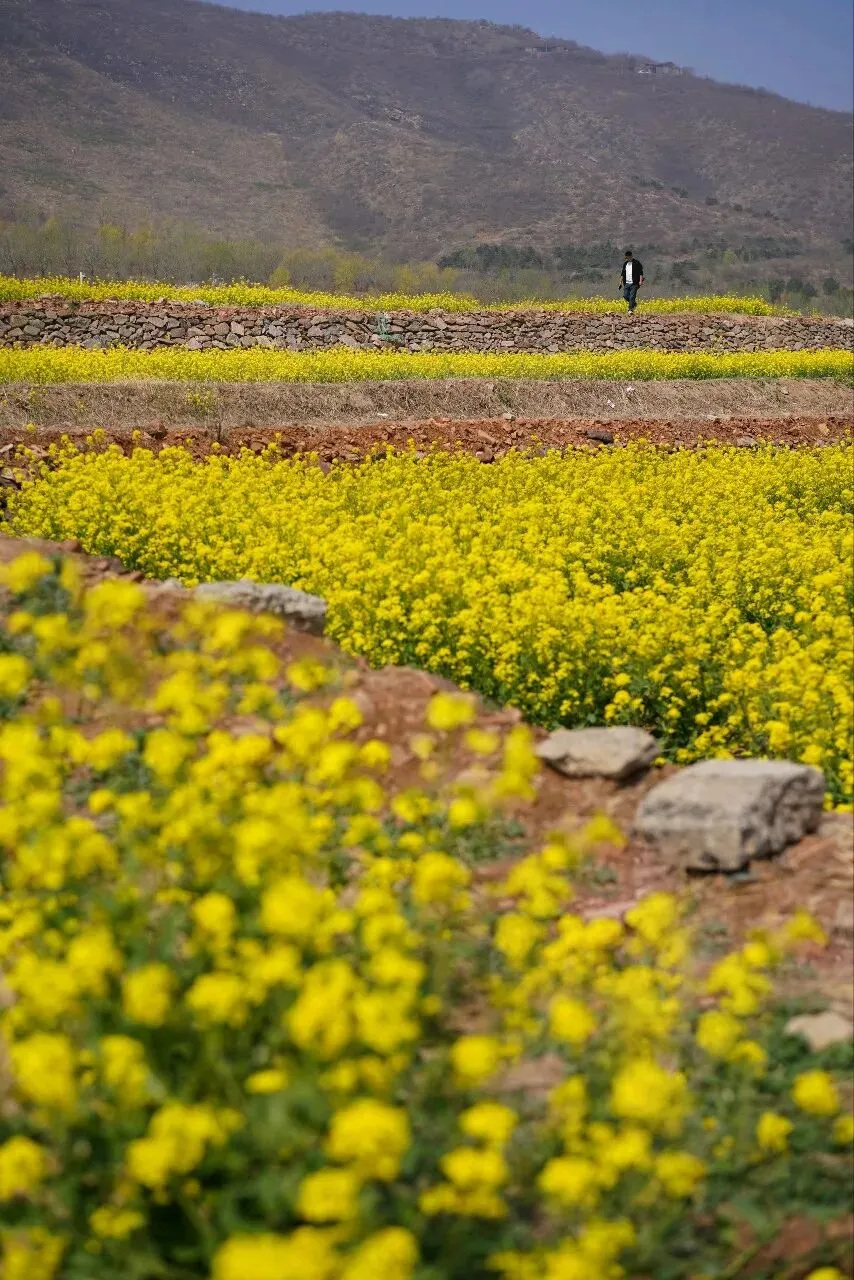 梯田油菜花和大风车的组合真的很春天,在空旷的地方,人也会豁达明朗起来。这边花田片区够大且立体,人流也相对比较分散,没有呜嚷的摊位,看花看的很舒服。