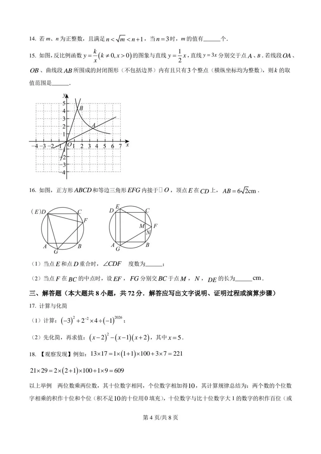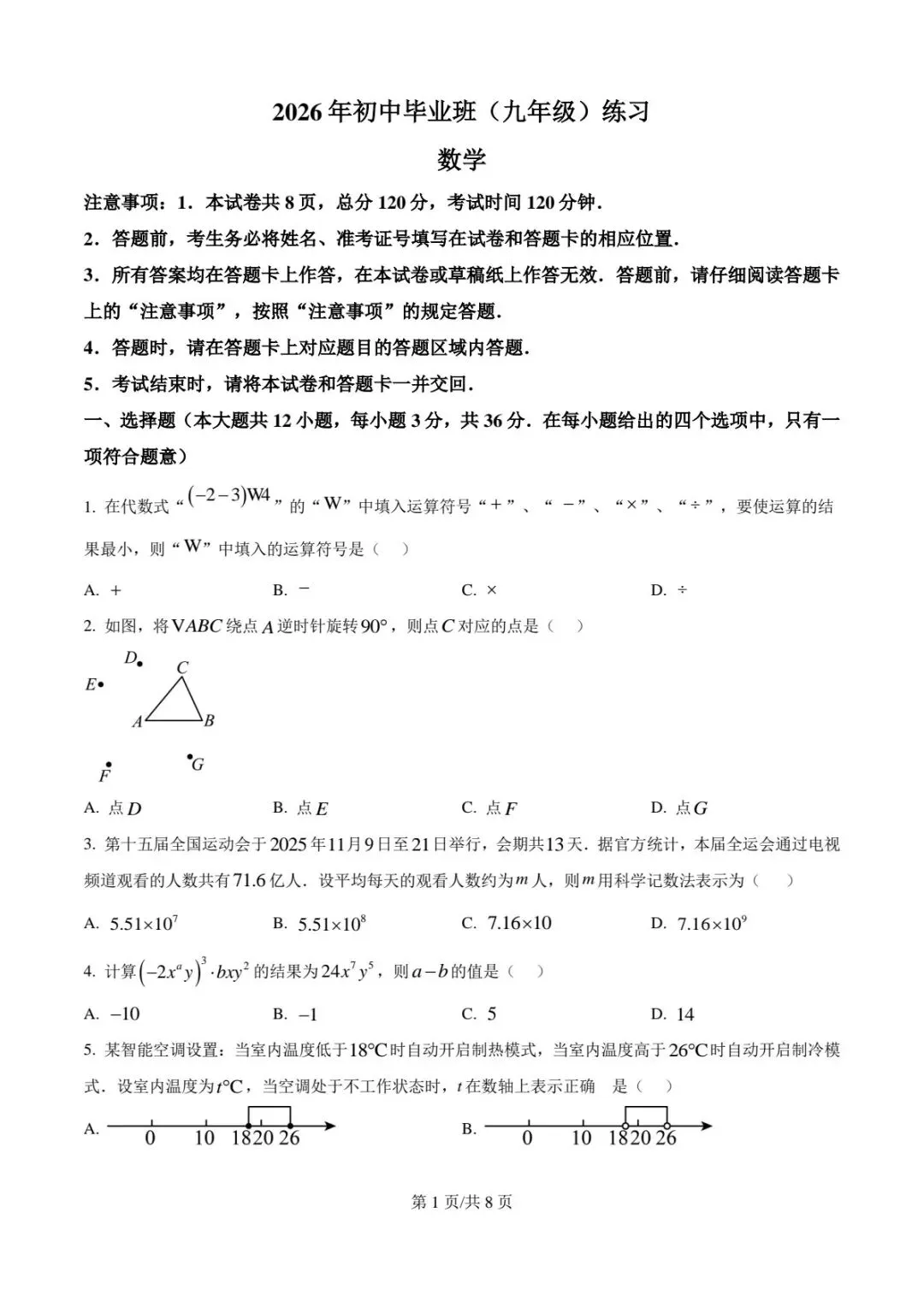 2026石家庄市新华区初中数学一模试卷